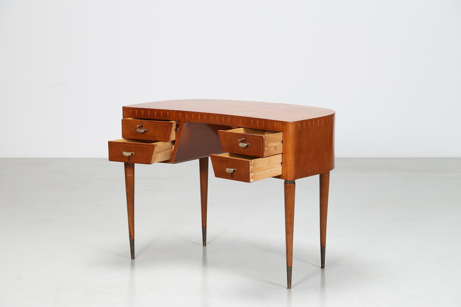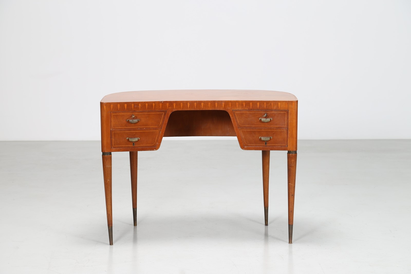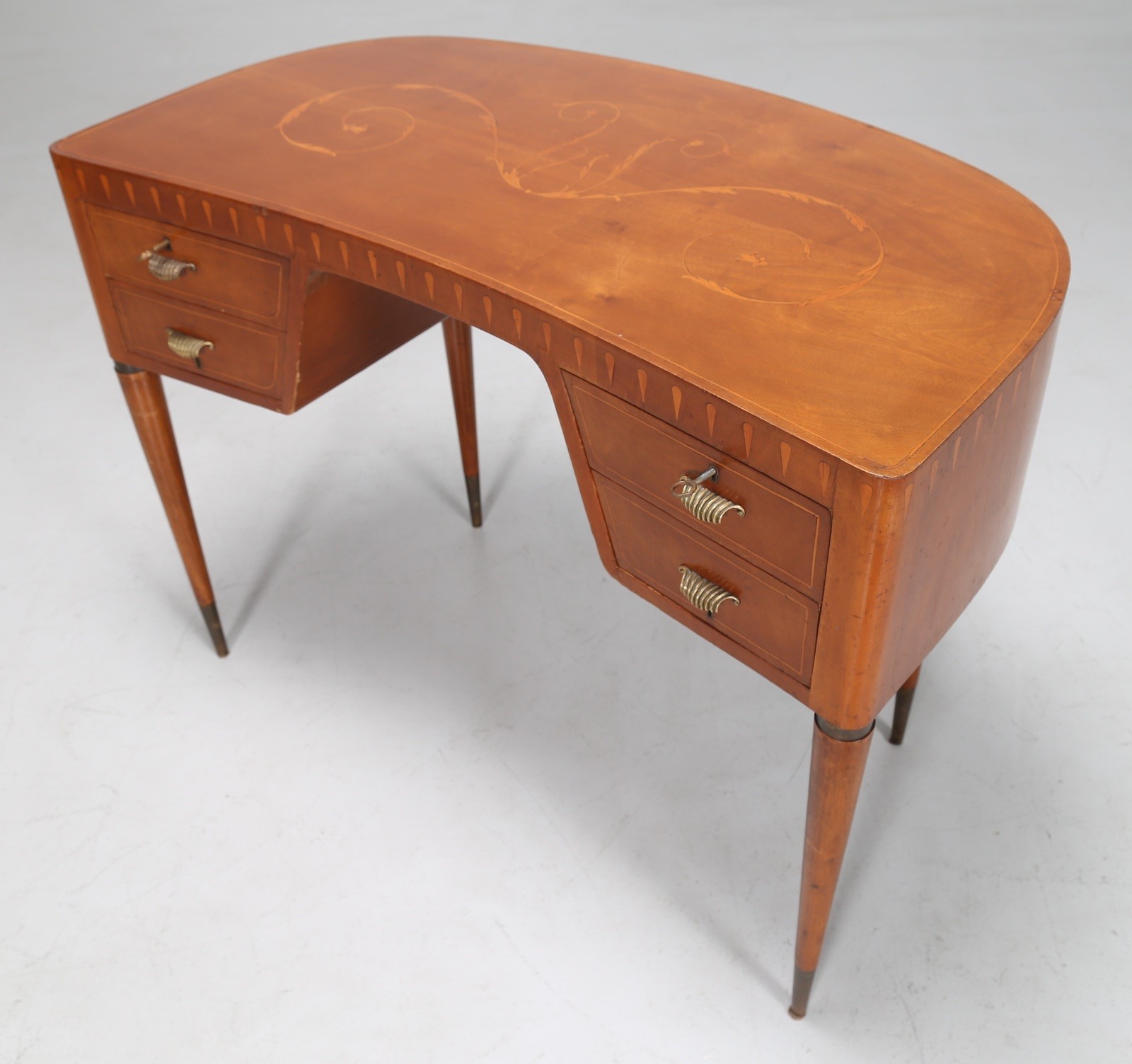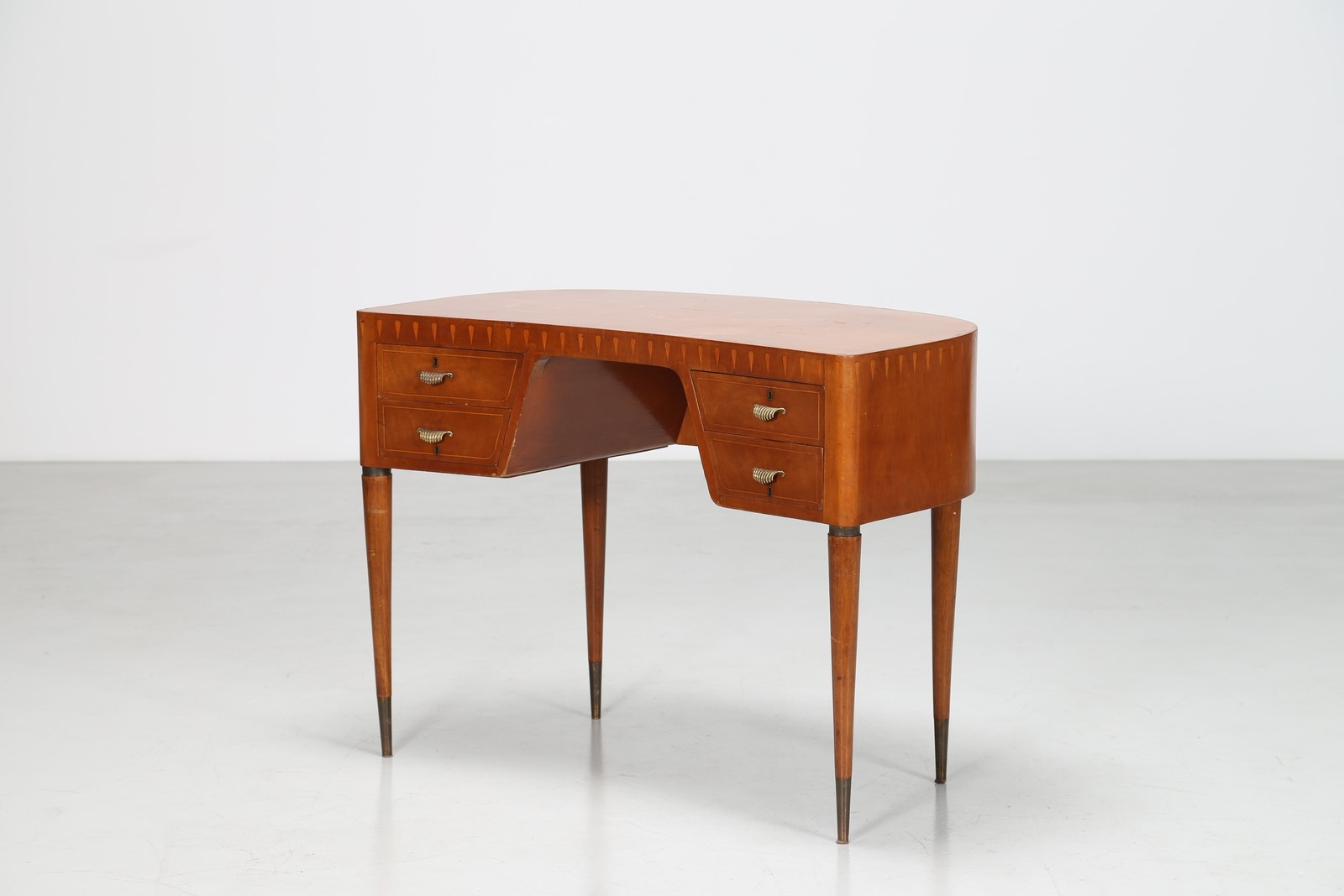 BUFFA PAOLO (1903 - 1970) Scrittoio a fagiolo in noce con intarsi in acero e puntali in ottone, anni 40. -. Cm 101,00 x 75,00 x 55,00.