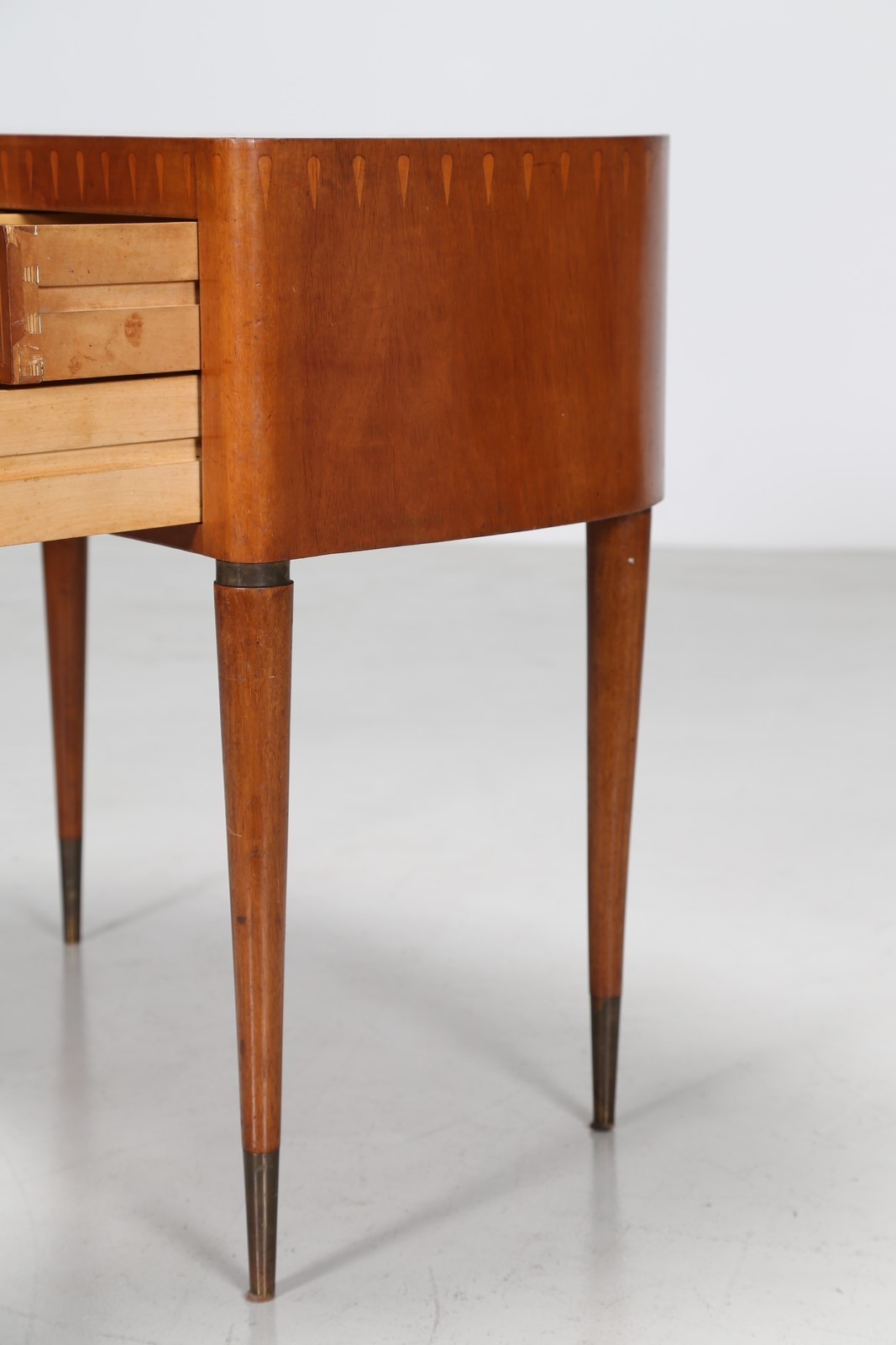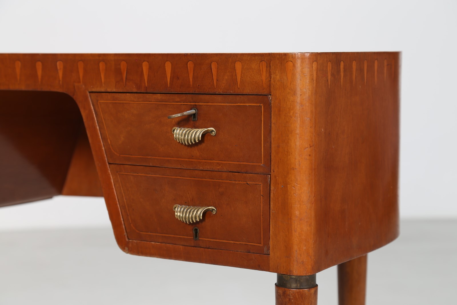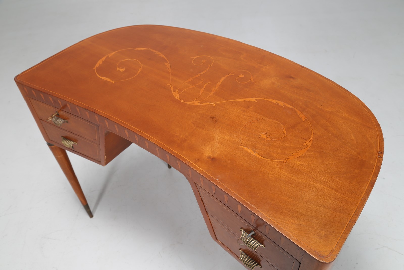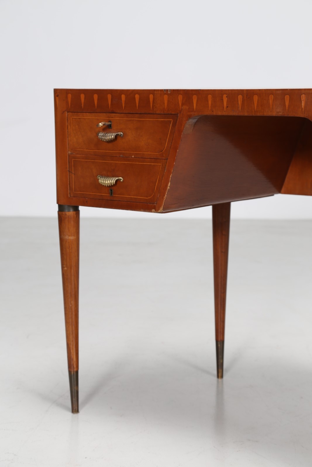 BUFFA PAOLO (1903 - 1970) Scrittoio a fagiolo in noce con intarsi in acero e puntali in ottone, anni 40. -. Cm 101,00 x 75,00 x 55,00.