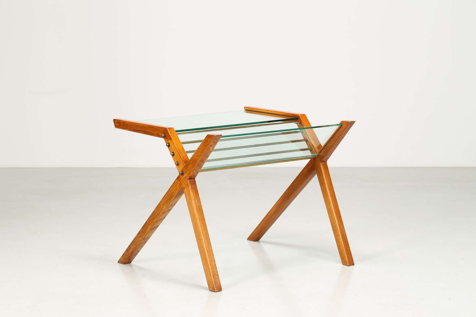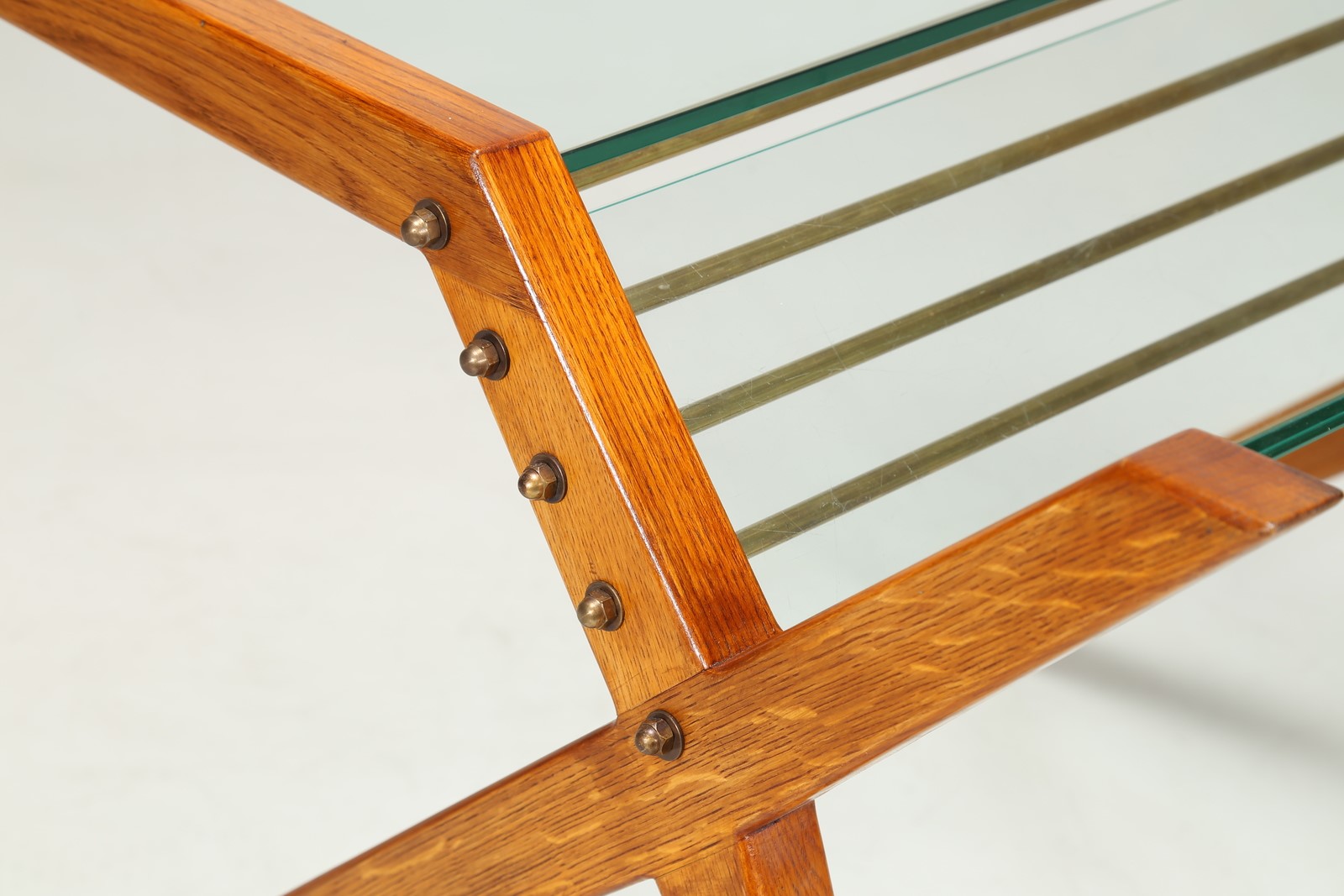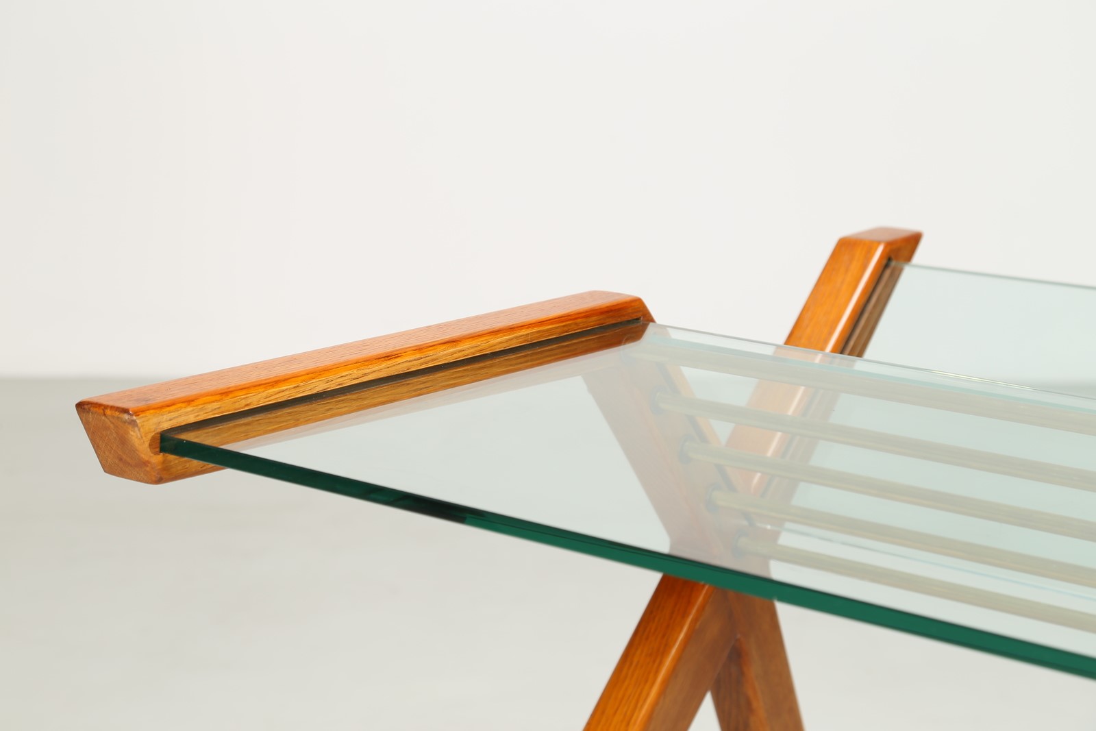 ZANUSO MARCO (1916 - 2001) Scrittoio in rovere, ottone e cristallo, anni 60....
