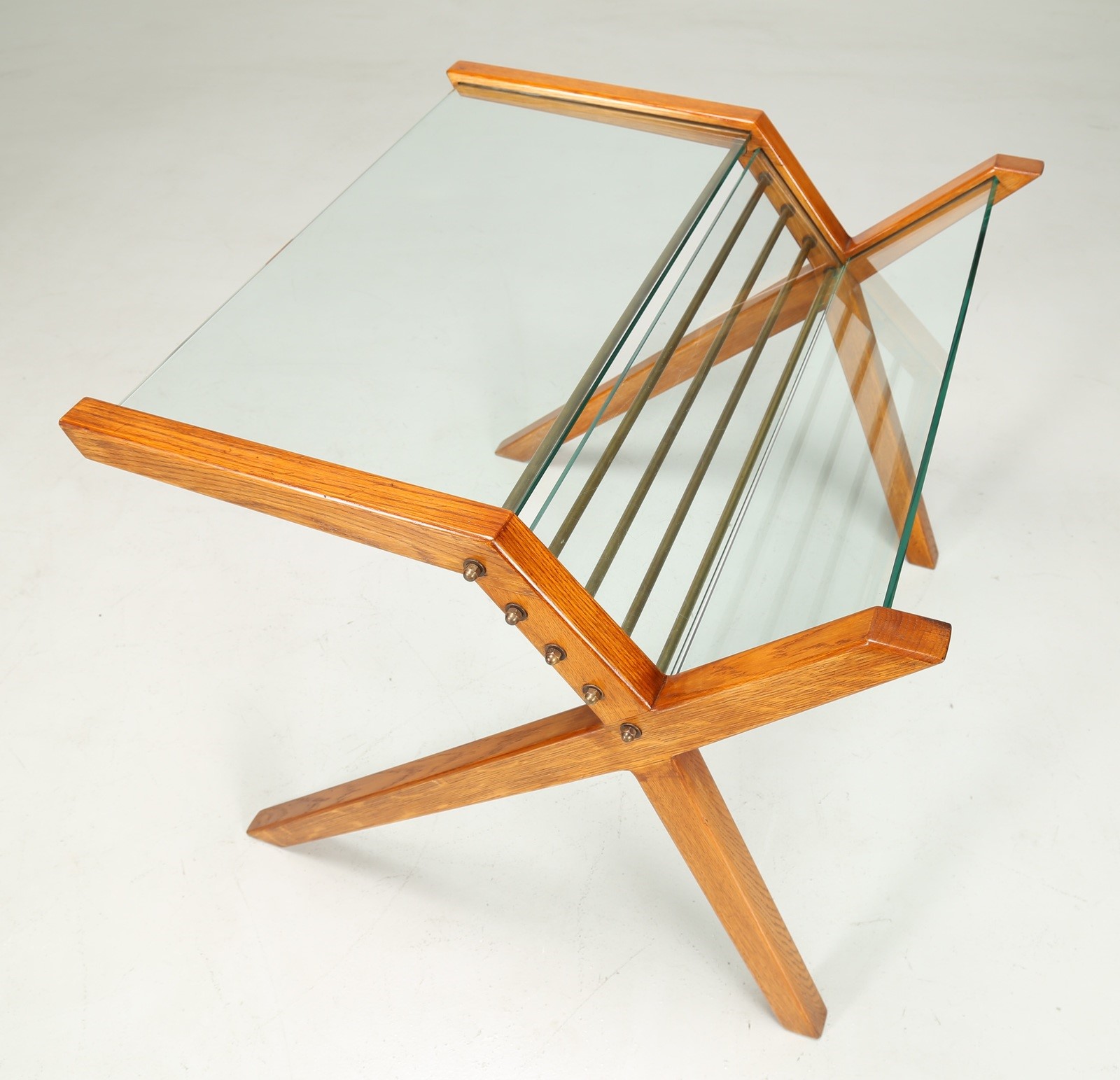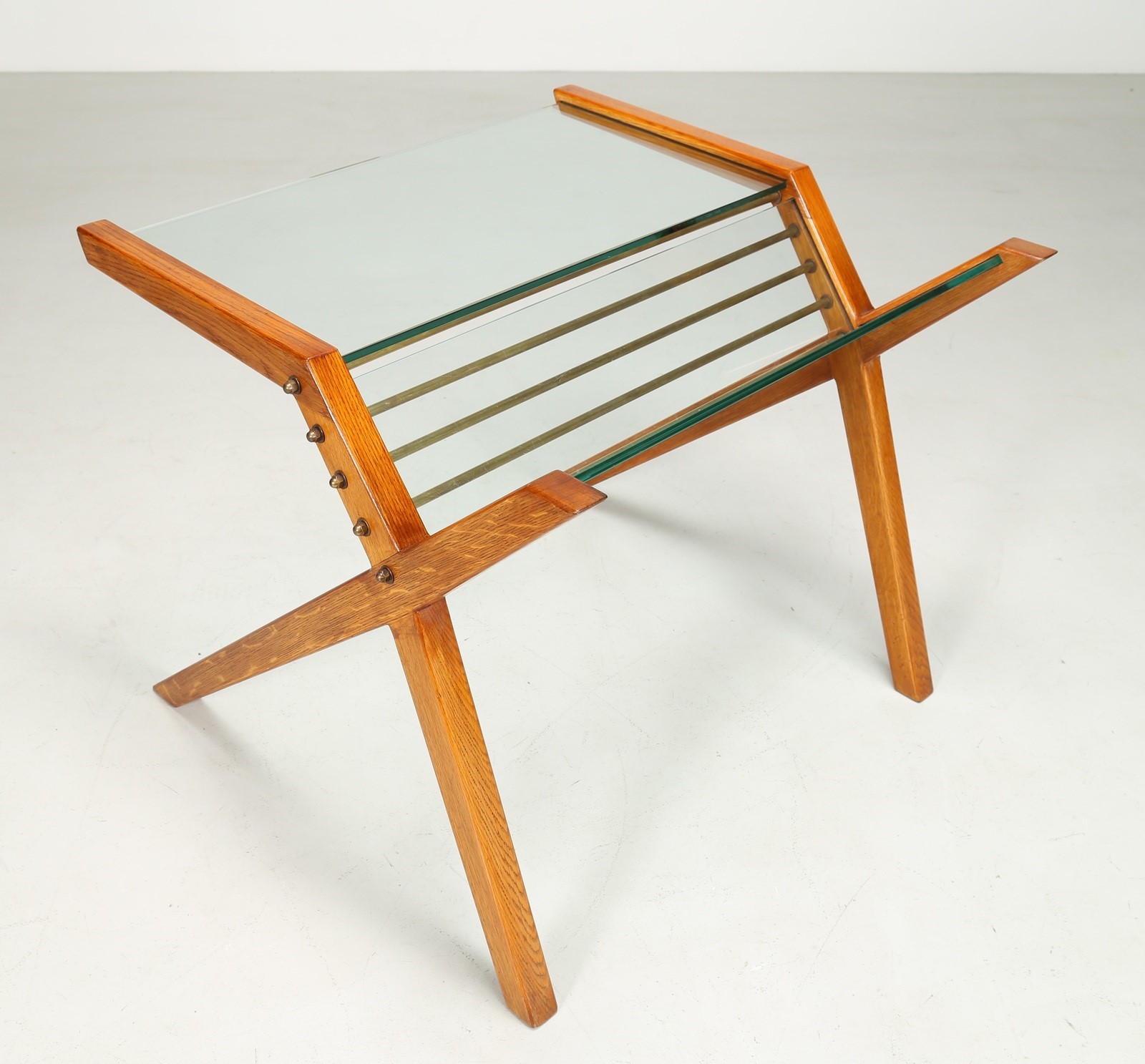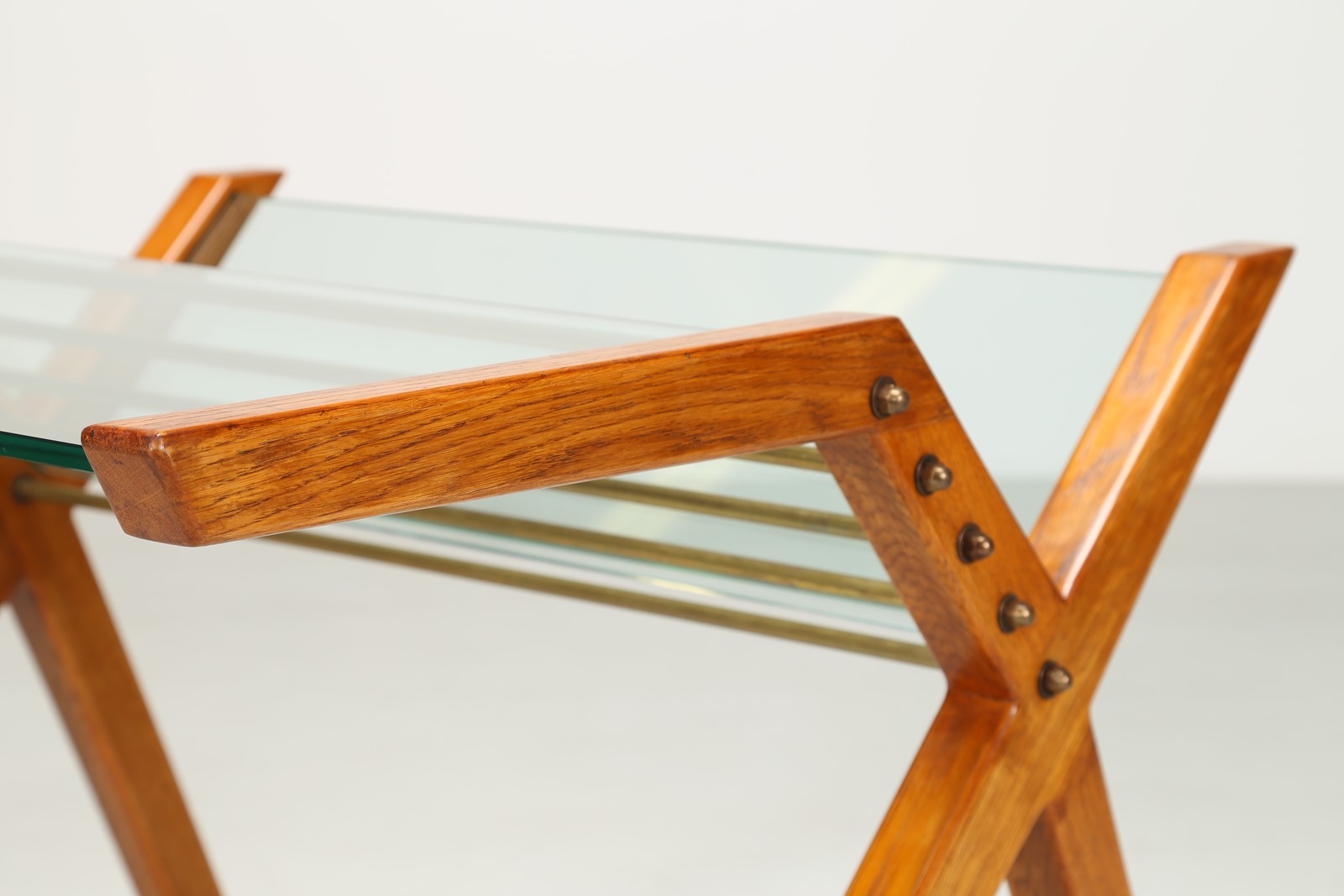 ZANUSO MARCO (1916 - 2001) Scrittoio in rovere, ottone e cristallo, anni 60. -. Cm 86,00 x 71,00 x 81,00.