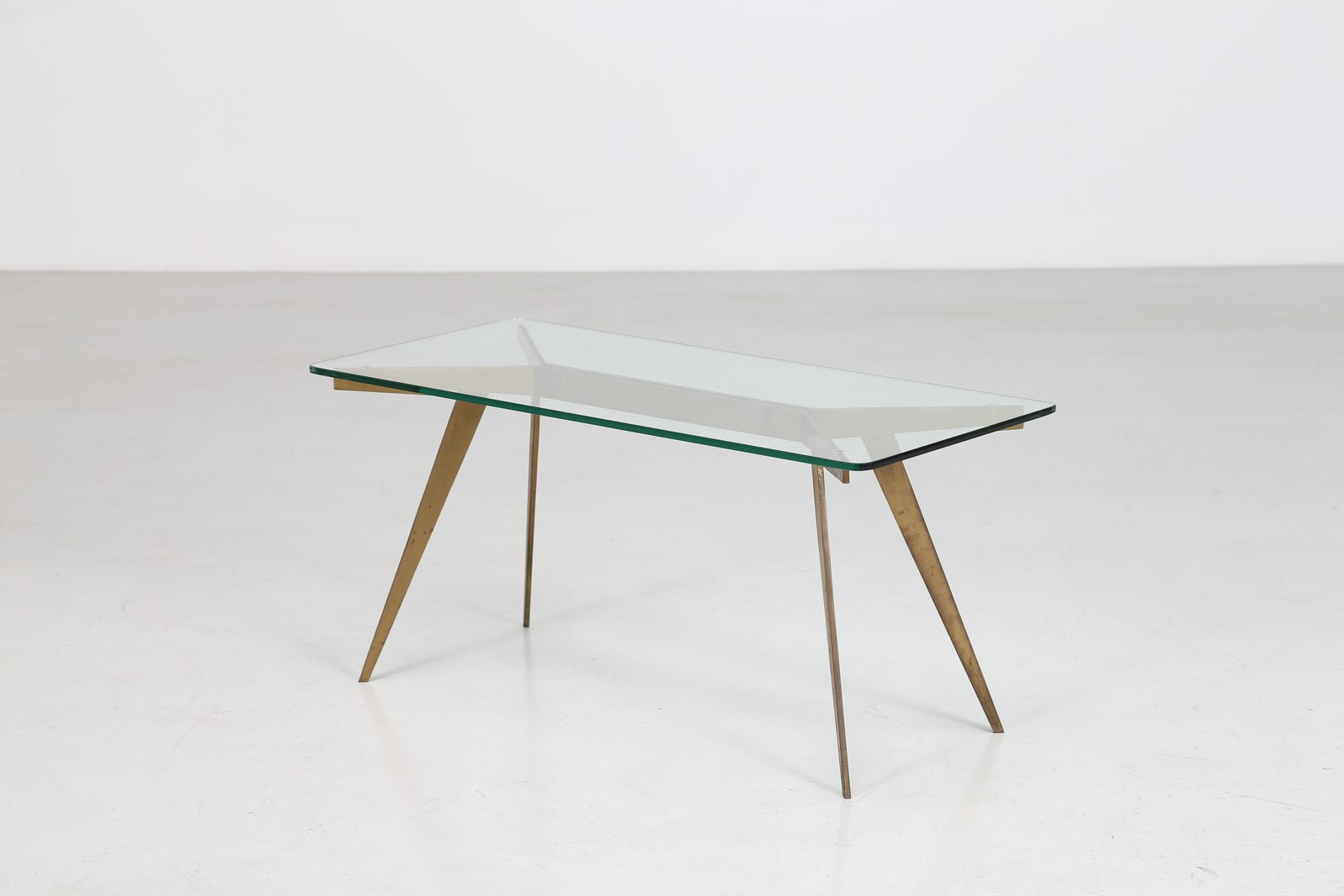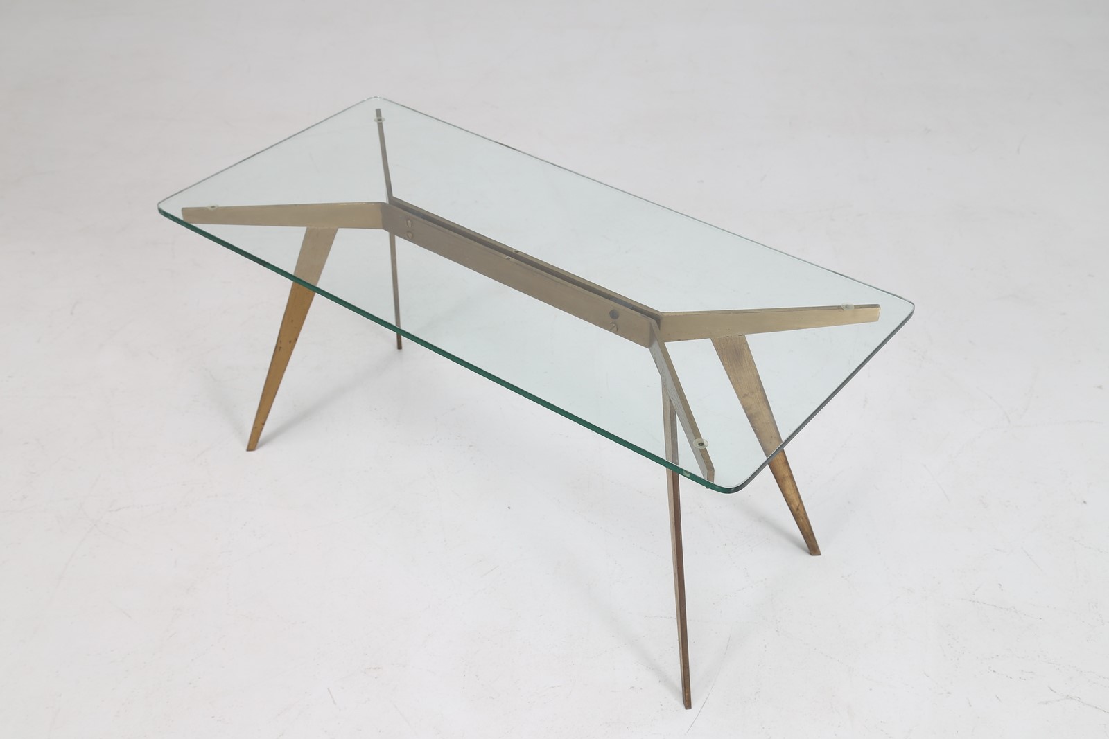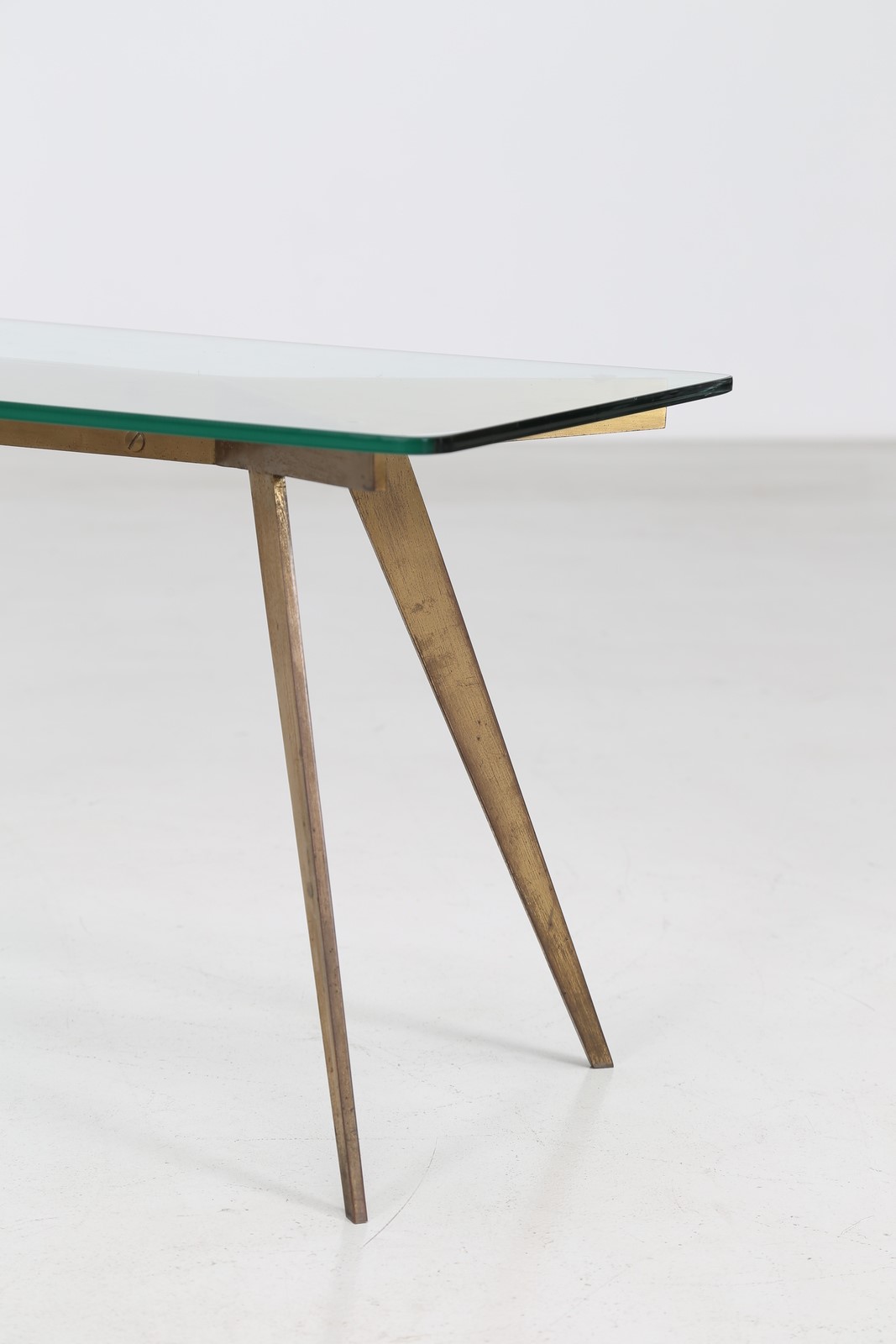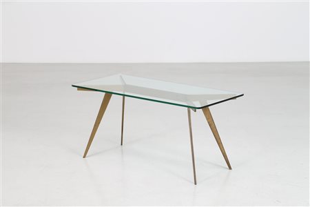 ANONIMO Tavolino in ottone con piano in cristallo, anni 50. . Cm 90,00 x 43,00 x 42,00.