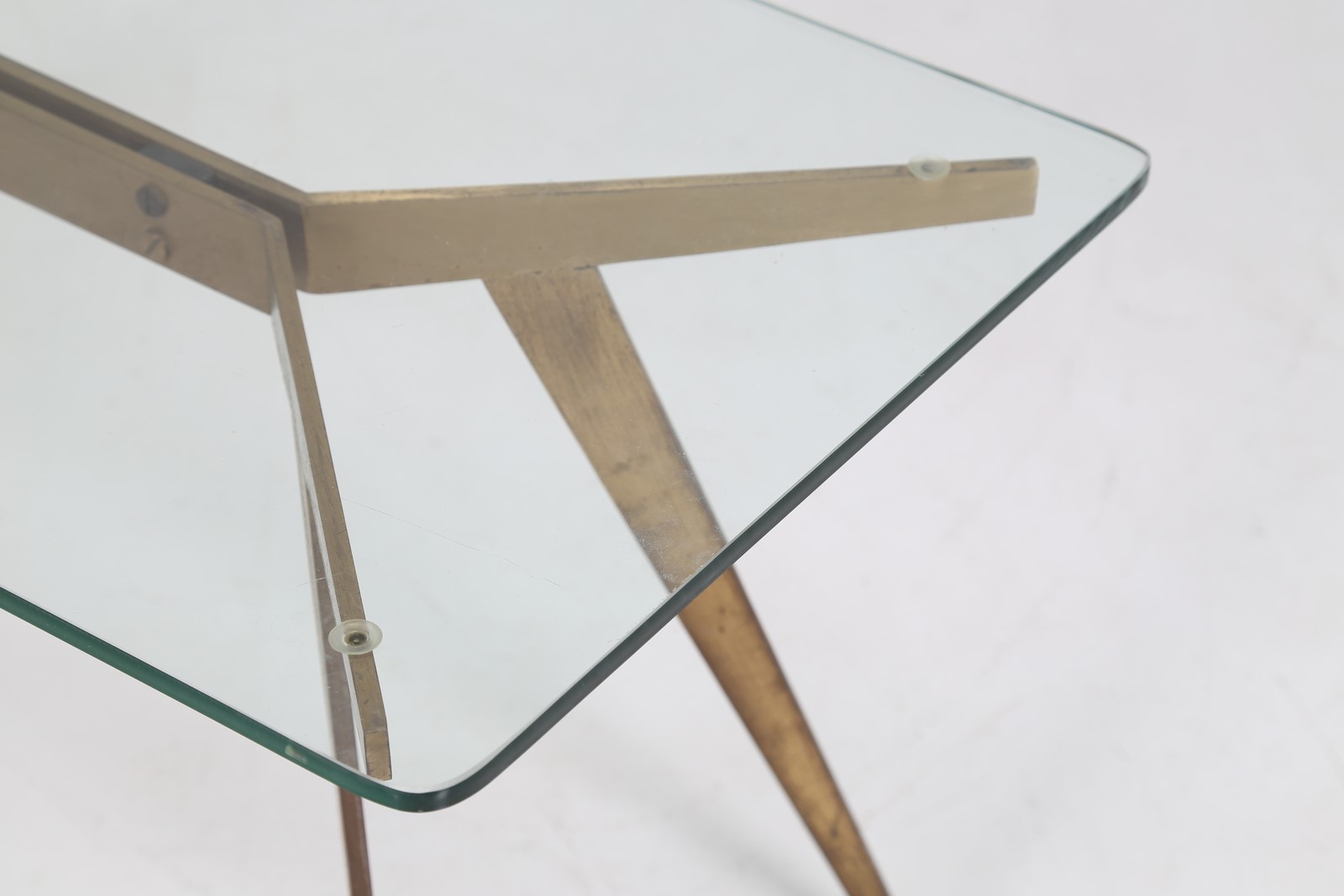 ANONIMO Tavolino in ottone con piano in cristallo, anni 50. . Cm 90,00 x...