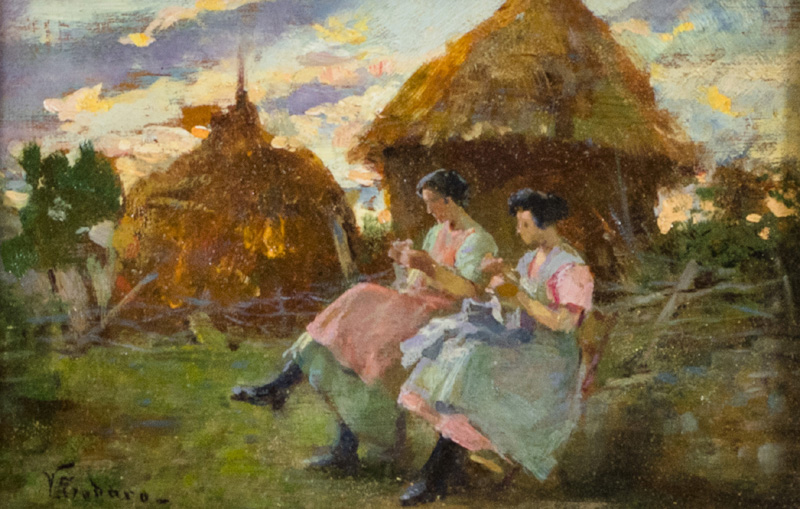Vincenzo Todaro ( 1926) Figure e pagliai, Olio su tavola, cm. 10,5x16,5. firmato in basso a sinistra.