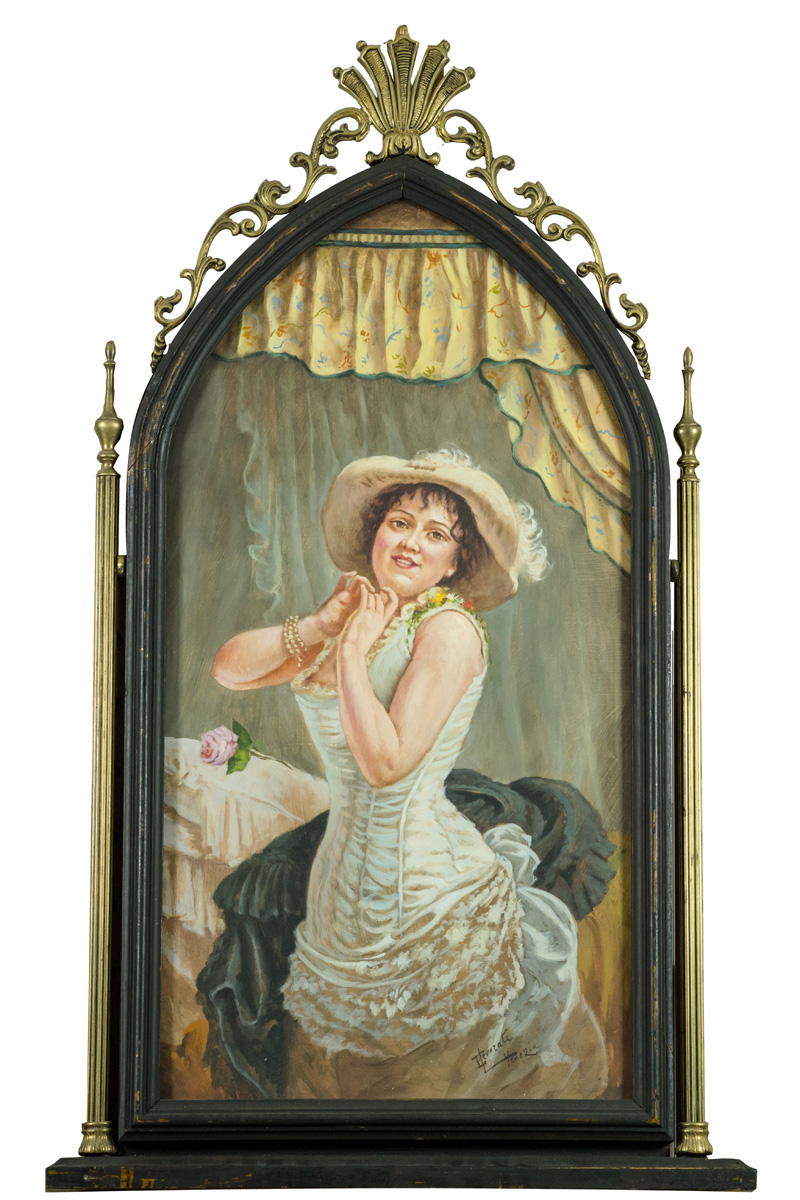 Ernesto Levorati (Padova 1920) Figura , Olio su cartone sagomato, cm. 89x45, in cornice d'epoca. Firmato in basso destra.