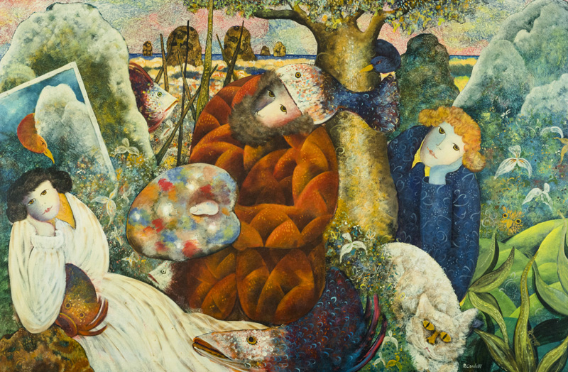 Raimondo Cardelli (Marsiglia Lucca 2008) Senza titolo, Olio su tela, cm. 100x150. Firmato in basso a destra. Sul verso: timbri Ghelfi Giorgio, Verona.