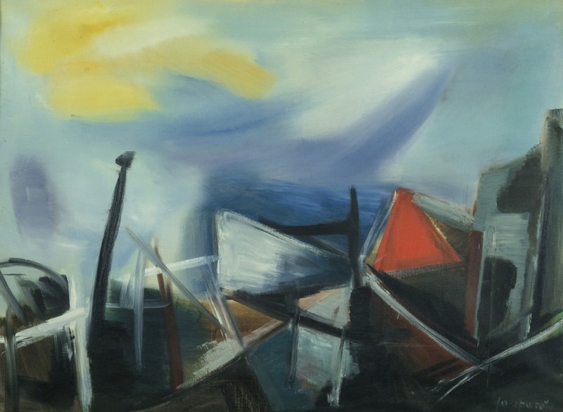 Luciano Gaspari (Venezia 2007) Tetti, Olio su tela, cm. 75x100. Firmato in...