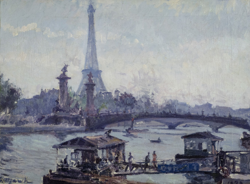 Giovanni March (Tunisi Livorno 1974) Parigi, La Senna, 1930 Olio su tela, cm. 45x60. Firma in basso a sinistra, data in basso a destra. Sul verso: Timbro "Galleria d'Arte Il Cavallo", Livorno, con timbro e descrizione. Etichetta: "Società delle belle Arti - Circolo degli Artisti Casa di Dante", Firenze, Novembre 1967, Cinquant'anni di pittura Giovanni March. Esposizione: Giovanni March 1894-1994, Mostra Antologica nel centenario della nascita e ventennale della morte, Livorno Dicembre 1994, a cura di Giuseppe Argentieri, pubblicato sul catalogo della mostra. Certificato di Autenticità e Provenienza Galleria d'Arte Goldoni, Livorno.