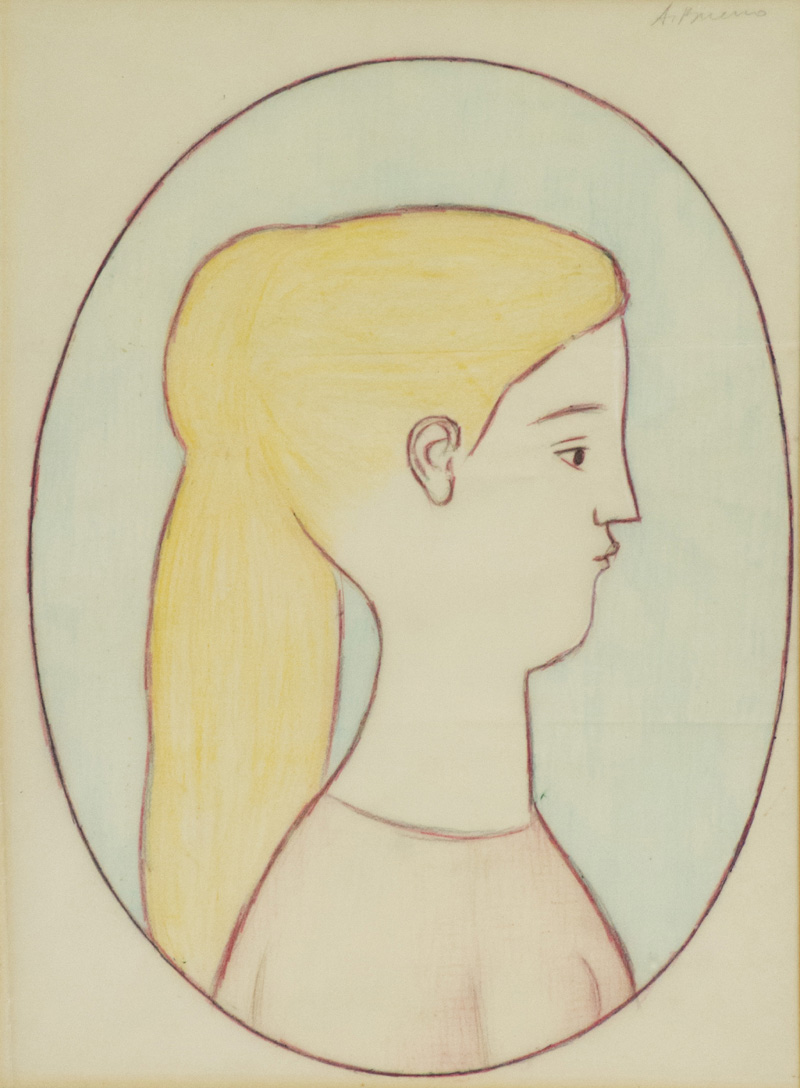 Antonio Bueno (Berlino Firenze 1984) Fanciulla, Matita e pastello su carta velina, cm. 48x36. Firmato in alto a destra. Autentica della figlia Maria Isabella Bueno, su foto.