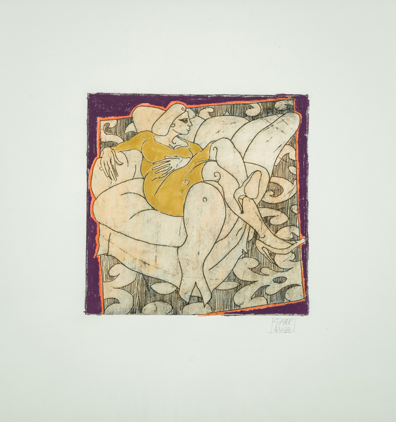 Giovanni Maranghi (Lastra a Signa (Fi) ) Figura seduta, Tecnica mista di cm. 25x25, su carta, cm. 50x50. Firmato in basso a destra. Autentica dell'Artista su foto.