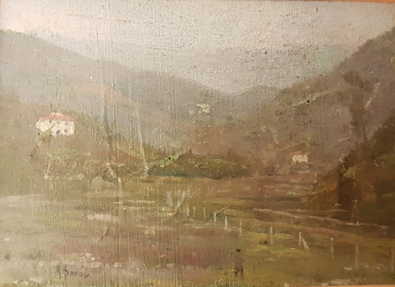 Sorbi Raffaello (Firenze 1931) Paesaggio, Olio su tavola, cm. 5,5x8. Firmato in basso a sinistra.