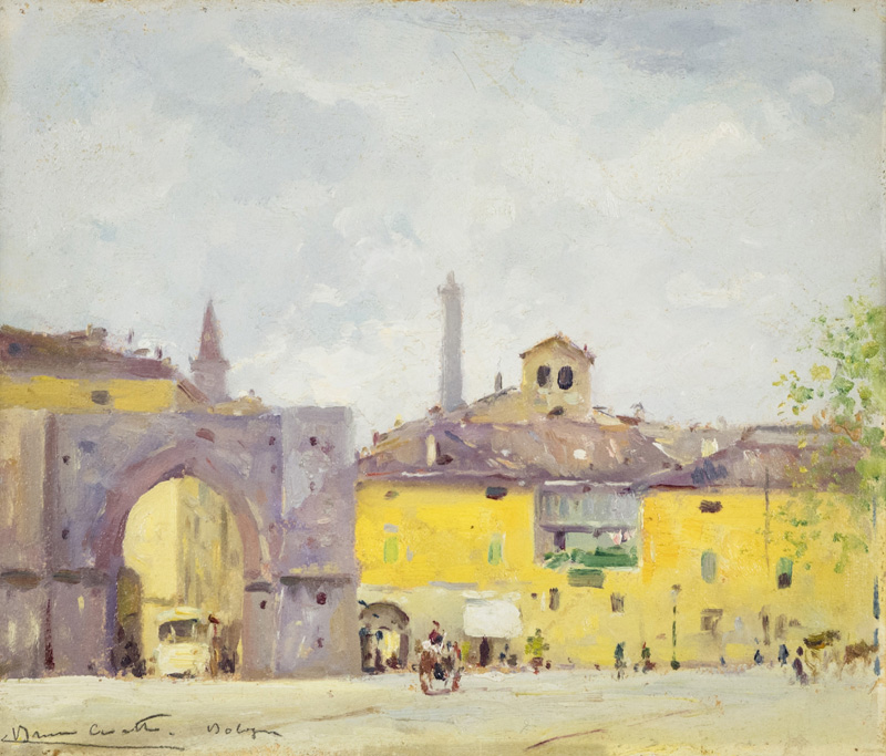 Bruno Croato (Trieste 1948) Bologna, Olio tavola, cm. 28,5x33. Firma e titolo...