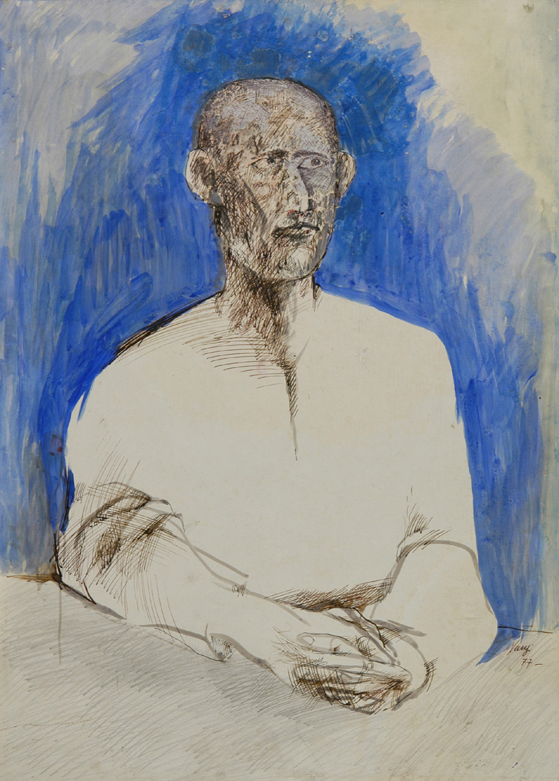 Giuliano Vangi (Barberino di Mugello ) Figura di uomo, 1977 Tecnica mista su cartone, cm. 70x50. Firma e data in basso a destra. Autentica dell'Artista su foto.
