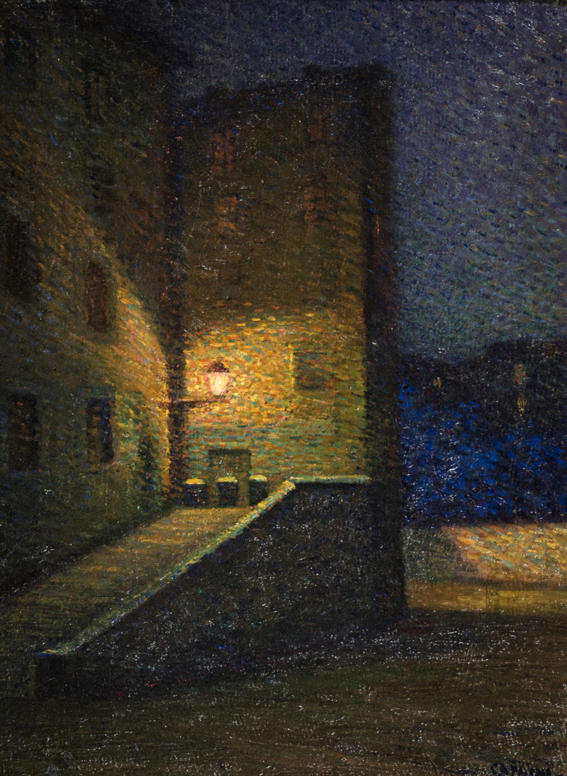 Eugenio Caprini (Livorno Livorno 1932) Vecchi mulini a vento, 1927 Olio su tavola, cm. 38,5x29. Firmato in basso a destra. Sul verso: firma, data e titolo. Certificato di Autenticità e Provenienza Galleria d'Arte Goldoni, Livorno.