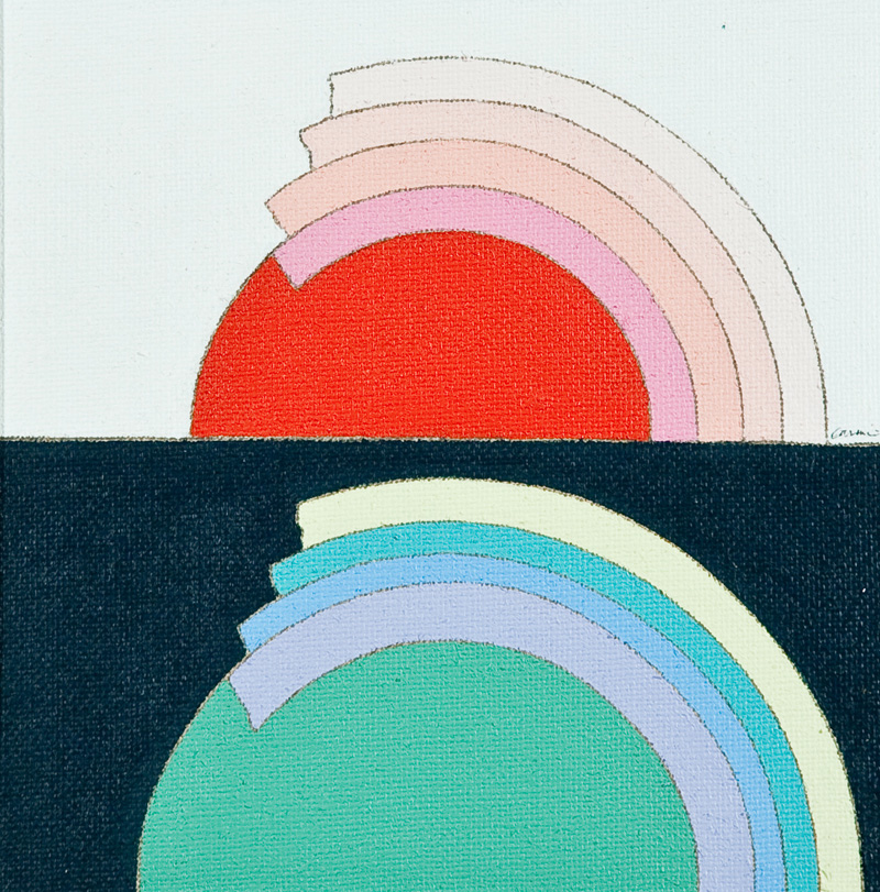 Eugenio Carmi (Genova 1920 Lugano 2016) Due ipotesi, 2007 Acrilici su tela di juta, cm. 30x30. Firma e data sul lato destro. Sul verso: firma e data. Sul pianetto: firma, data e titolo. Pubblicato su: Sogni popolati di colore, a cura di Arte Arte, Legnano, Vr, pag. 9. Autentica dell'Artista su foto.