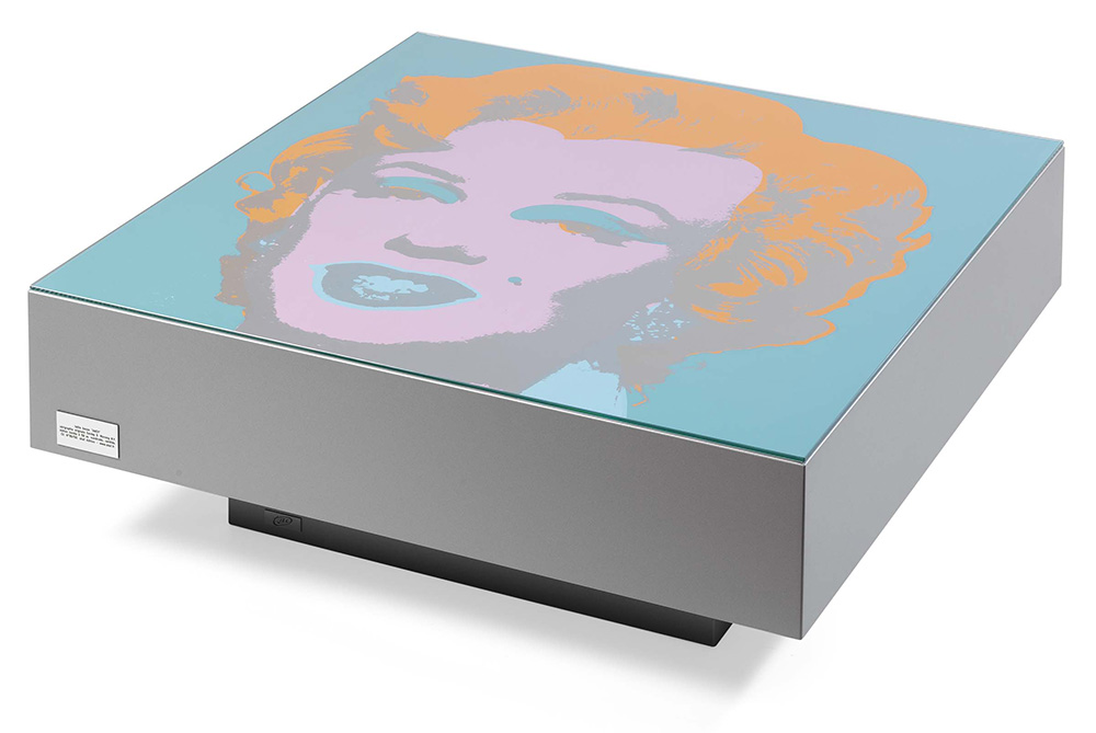J2L La Chapelle d'Andaine 1936 Tavolo Andy Tavolino con serigrafia a colori, es. 89/150, cm. 35x91x91 Su un lato: etichetta con firma: J2L: etichetta con dati dell'opera e tiratura: Ex. N. 89/150. Il tavolo è accompagnato dal certificato della serigrafia Marilyn Monroe 11.29, Sunday B. Morning, 17 dicembre 2012