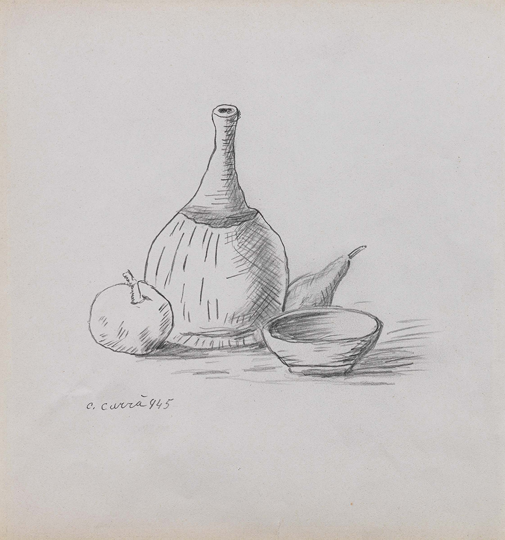 Carlo Carrà Quargnento (Al) 1881 - Milano 1966 Natura morta, 1945 Matita su carta, cm. 25,2x23,4 Firma e data in basso a sinistra: C. Carrà 945. Certificato su foto Archivio Carlo Carrà, Milano, 22 dicembre 2015, con n. 77/45