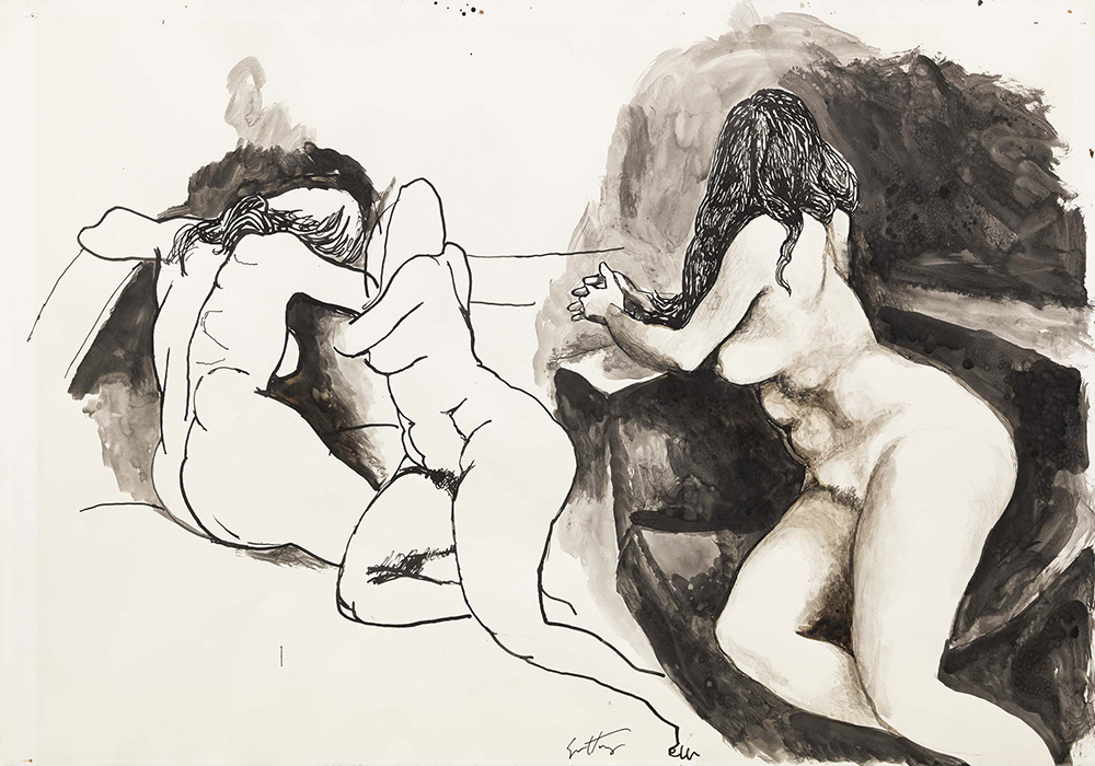 Renato Guttuso Bagheria (Pa) 1912 - Roma 1987 Nudi China su carta, cm. 51x73 Firma in basso al centro: Guttuso Foto autenticata dall'artista.