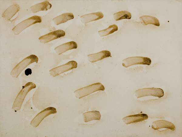 Pierpaolo Calzolari Senza titolo – 1968 sale, petali di rose e tecnica mista su cartone cm. 76x100 Firma in basso al centro Autentica dell'artista su foto Sul retro etichetta dello Studio De Ambrogi,Milano ed etichetta della Galleria Spazia,Bologna (in allegato all'autentica)