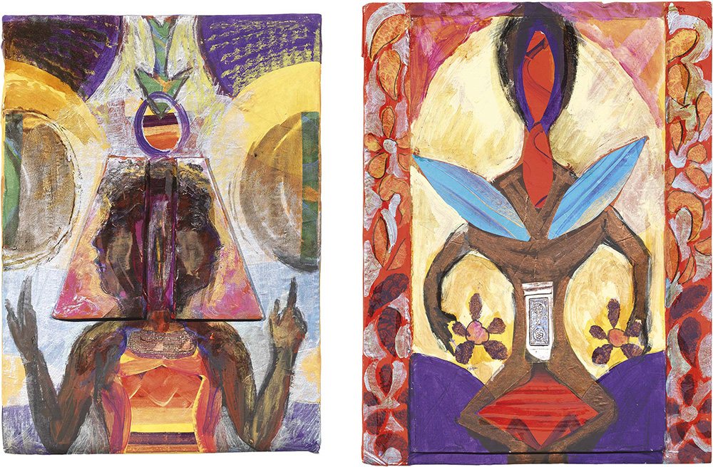 Bruno Ceccobelli Monte Castello Vibio (Pg) 1952 Due opere A) Due mondi un'anima, tecnica mista e collage su cartone, cm. 29,5x21. Sigla e titolo al verso: BC / Due mondi / un'anima. Foto autenticata dall'artista, Todi, 27.06.2000, con n. G373; B) Ladro di due mondi, tecnica mista e collage su cartone, cm. 31x23. Sigla e titolo al verso: BC / Ladro di / due mondi. Foto autenticata dall'artista, Todi, 27.02.2002, con n. 30CBF