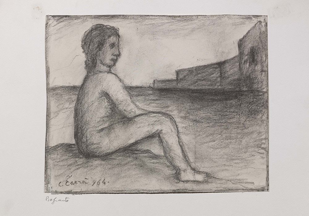 Carlo Carrà Quargnento (Al) 1881 - Milano 1966 Bagnante, 1964 Carboncino su carta, cm. 25,7x32,5 Firma e data in basso a sinistra: C. Carrà 964, titolo in basso, su una carta di supporto: Bagnante. Certificato su foto Alberto Schubert - Arte Moderna, con n. 5493/73. Bibliografia: Franco Russoli, Massimo Carrà, Carrà disegni, Grafis edizioni d'arte, Bologna, 1977, pp. 488, 489, n. 902