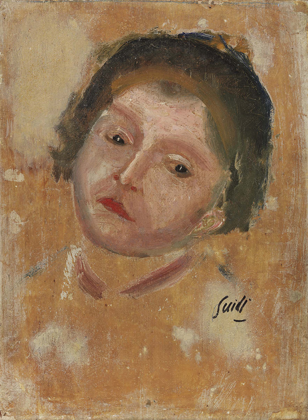 Virgilio Guidi Roma 1891 - Venezia 1984 Figura, 1936 Olio su tavola, cm. 40,5x29,8 Firma in basso a destra: Guidi. Esposizioni: Virgilio Guidi, scritti di Marcello Azzolini e Virgilio Guidi, Focette, Galleria d'Arte Moderna Farsetti, 12 luglio - 1 agosto 1975, cat. n. 10, illustrato (opera datata 1938). Bibliografia: Toni Toniato, Dino Marangon, Franca Bizzotto, Virgilio Guidi. Catalogo generale dei dipinti. Volume primo, Electa, Milano, 1998, p. 248, n. 1936 12.