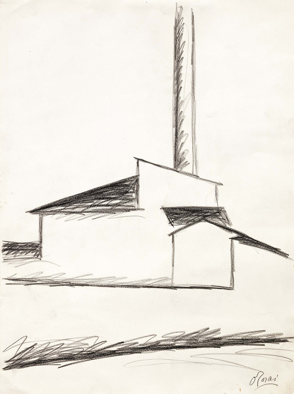 Ottone Rosai Firenze 1895 - Ivrea (To) 1957 Fabbrica Carboncino su carta, cm. 51x37,8 Firma in basso a destra: O. Rosai. L'opera verrà pubblicata nel primo volume del Catalogo Generale Ragionato delle Opere di Ottone Rosai, a cura di Giovanni Faccenda, Editoriale Giorgio Mondadori.