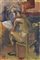 Mino Maccari Siena 1898 - Roma 1989 Nello studio, 1943 Olio su tavola, cm. 45x30 Firma e data in basso a destra: Maccari / 43; firma al verso: Mino Maccari [...]: timbro Raccolta N. Mobilio, Firenze: timbro Galleria d'Arte "Molino", Roma. Storia: Collezione N. Mobilio, Firenze; Collezione privata