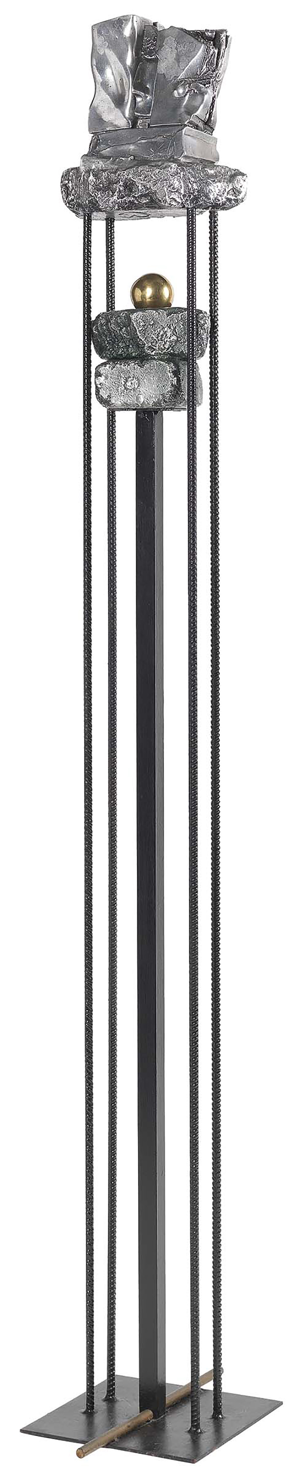 Franco Fossi Empoli (Fi) 1955 Elevazione del tempio archetipo, 1998-2000 Scultura in alluminio e ottone su base in ferro, es. unico, cm. 168 h. (con base) Firma sull'alluminio: F. Fossi.