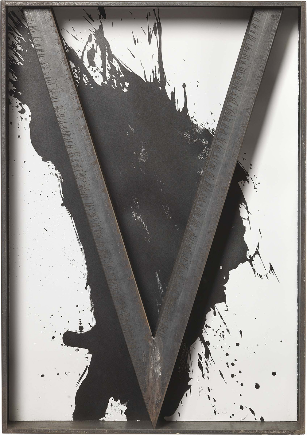 Jannis Kounellis Atene 1936 - Roma 2017 Senza titolo, 2005 Ferro e litografia su carta, multiplo, es. 25/25, cm. 100x70,5x15,5 Firma e tiratura al verso: Kounellis / 25/25. Bibliografia: Jannis Kounellis. Edizioni, Galleria dell'Oca, Roma, 2007, pp. 17, 78.