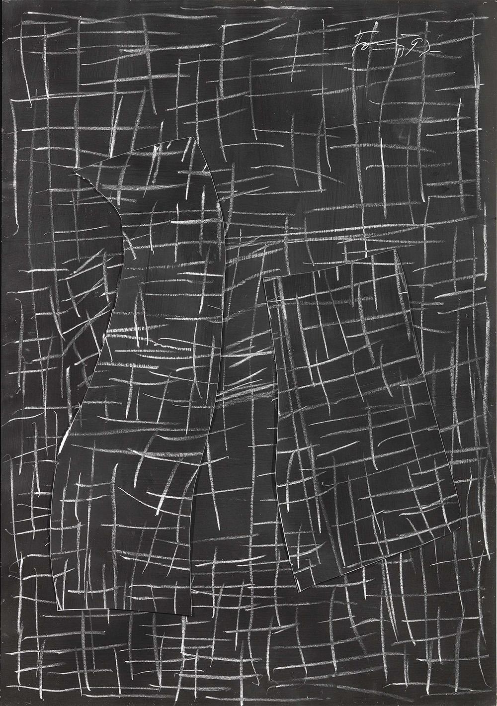 Günther Förg Füssen 1952 - Friburg 2013 Senza titolo, 1997 Gesso, gessetto e collage su cartoncino, cm. 99,5x69,5 Firma e data in alto a destra: Förg 97. Al verso, su un cartone di supporto: etichetta Salvatore + Carolina Ala Galleria, Milano, con n. SCA-GF-44: etichetta Galleria Six, Milano. Storia: Collezione Donati; Galleria Ala, Milano; Collezione privata Certificato con foto Galleria Six, Milano, 19-02-2016.