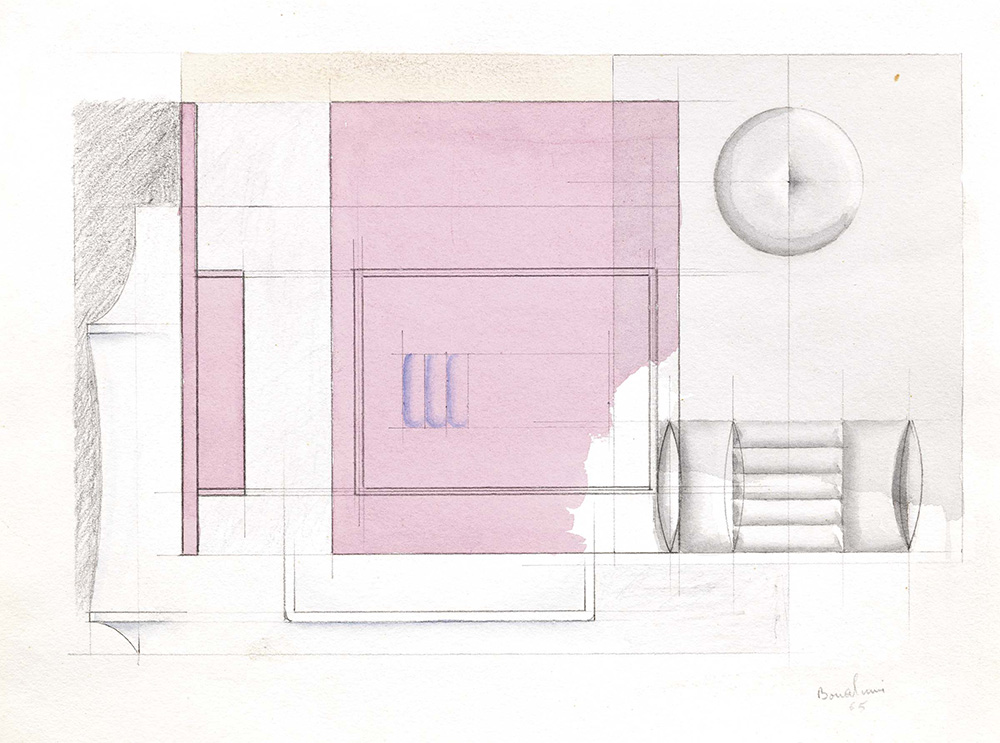 Agostino Bonalumi Vimercate (Mi) 1935 - Milano 2013 Progetto, 1965 Matita e acquerello su carta, cm. 29x38 Firma e data in basso a destra: Bonalumi / 65. Due foto autenticate dall'artista, una in data '93 e una in data '03.