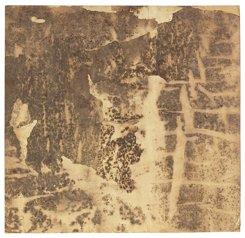 Mimmo Rotella Catanzaro 1918 - Milano 2006 Senza titolo, 1956 Retro d'affiche su tela, cm. 54x56 Firma in basso a destra: Rotella; al verso: cartiglio con dati dell'opera. Foto autenticata dall'artista. Esposizioni: Mimmo Rotella. Antologica, Pisa, Palazzo Lanfranchi, 19 maggio - 19 agosto 2001, poi Genova, Museo d'Arte Contemporanea di Villa Croce, 28 giugno - 22 settembre 2002, cat. p. 53, illustrato a colori; Mimmo Rotella. Retrospective, Mulhouse, Musée des Beaux-Arts / Villa Steinbach, cat. pp. 44, 107, n. 8, illustrato a colori. Bibliografia: Germano Celant, Mimmo Rotella. Catalogo Ragionato. Primo Volume 1944 - 1961, Skira, Milano, 2016, p. 570, n. 1956 061.
