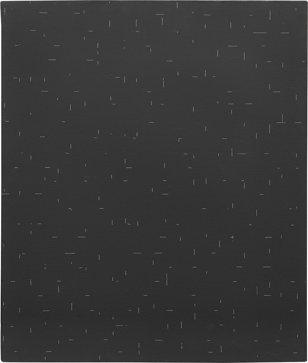 Dadamaino Milano 1935 - 2004 L'inconscio razionale, 1975 Acrilico su tela, cm. 65x55 Firma, titolo e data al verso sul telaio: Dadamaino / L'inconscio razionale - 1975. Certificato su foto Archivio Dadamaino, Milano, 30/01/2013, con n. 005/13.