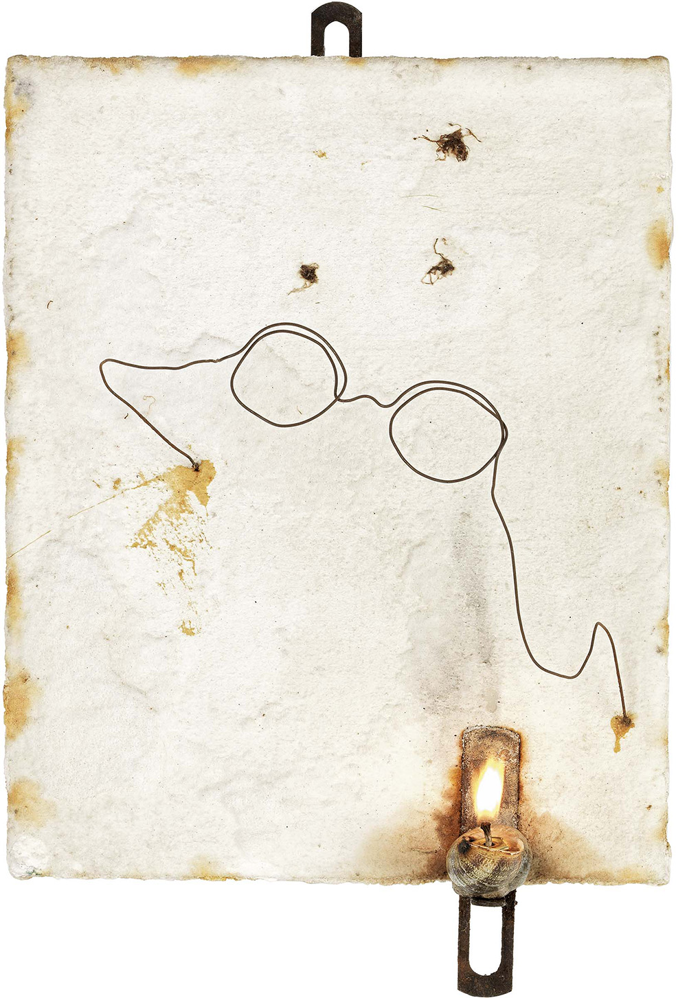 Pier Paolo Calzolari Bologna 1943 Senza titolo, 1979 Tecnica mista su tela (sale, filo di ferro, tabacco, ferro, guscio di chiocciola), cm. 30,5x24,5x17 Firma e data al verso: Pier Paolo Calzolari / 79. Certificato su foto Fondazione Calzolari, con n. 1979-21.