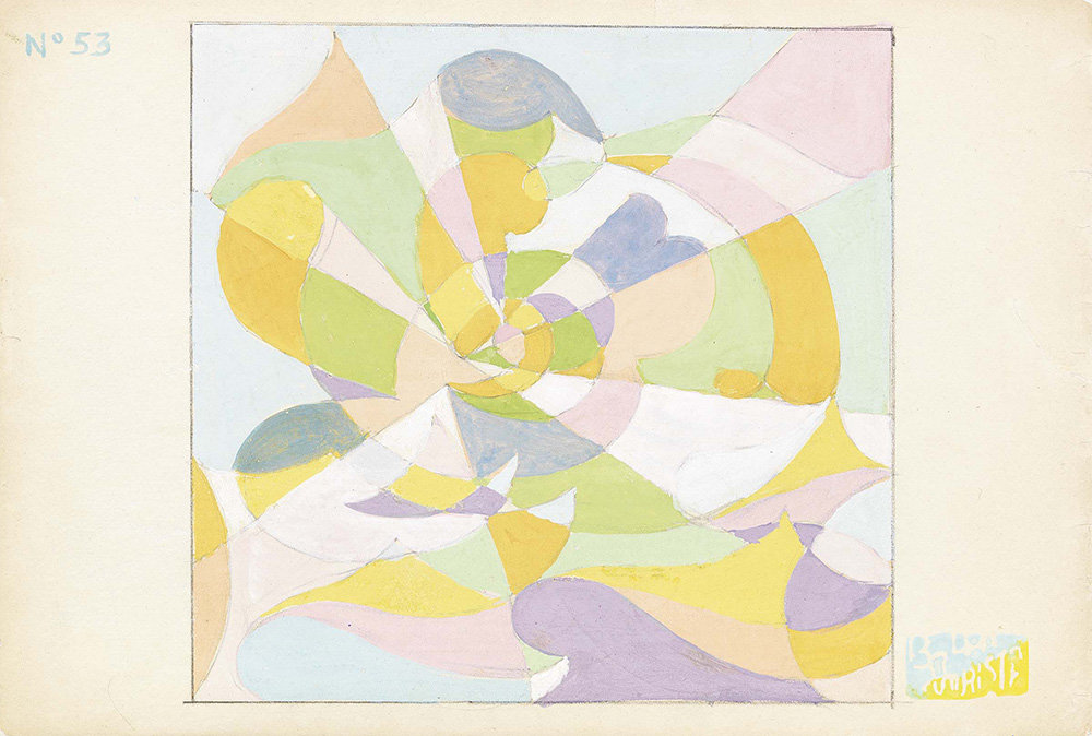 Giacomo Balla Torino 1871 - Roma 1958 Ricerca luce ideale, 1925-29 Tempera grassa su carta applicata su tela, cm. 24,6x35,7 Timbro in basso a destra: Balla / Futurista; in alto a sinistra: N. 53. Storia Casa Balla, Roma; Collezione privata