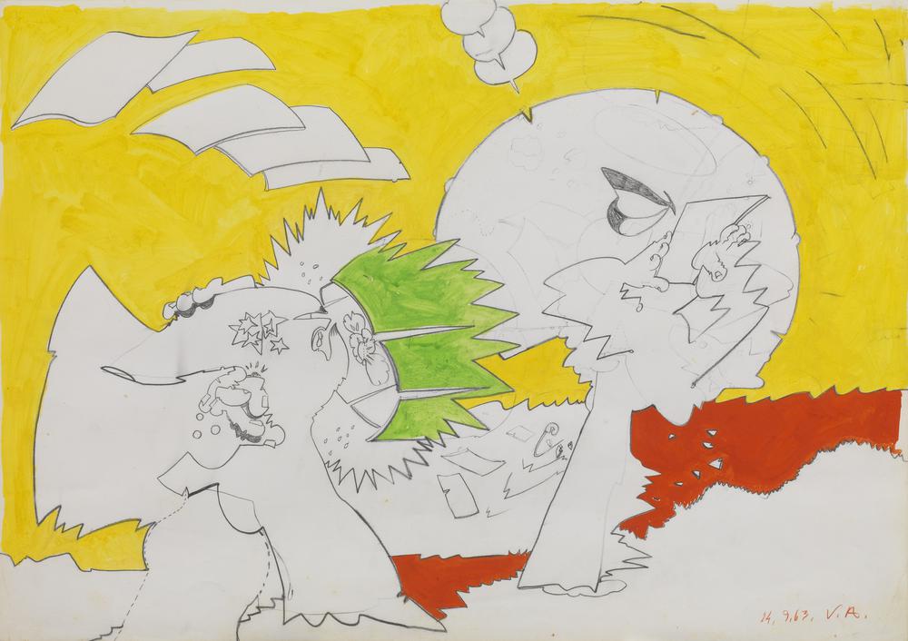 Valerio Adami SENZA TITOLO, 1963gouache e matita su cartone, cm 51x73sigla e...