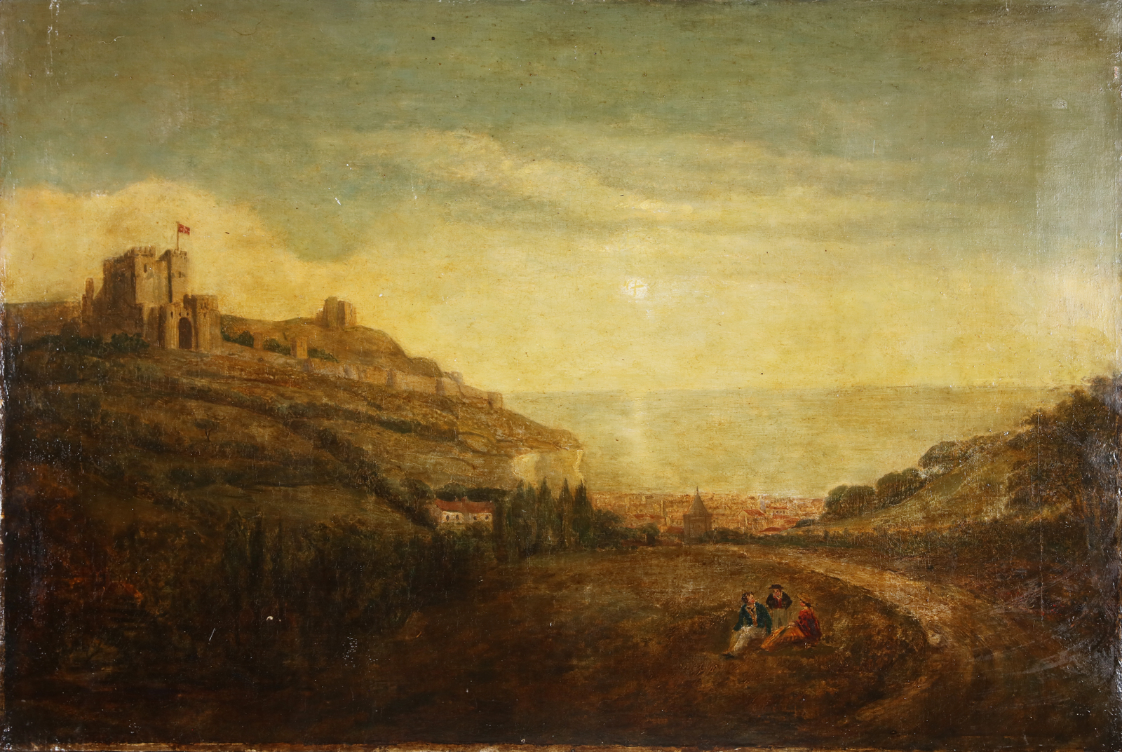 SCUOLA INGLESE DEL XIX SECOLO Paesaggio con personaggi. Olio su tela . Cm...