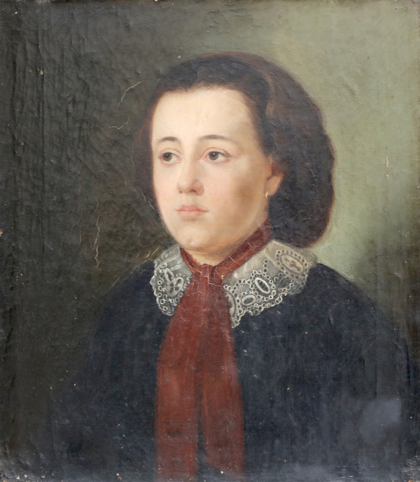 ARTISTA DEL XIX SECOLO Ritratto di donna. . Olio su tela . Cm 43,00 x 49,00. . Cornice presente