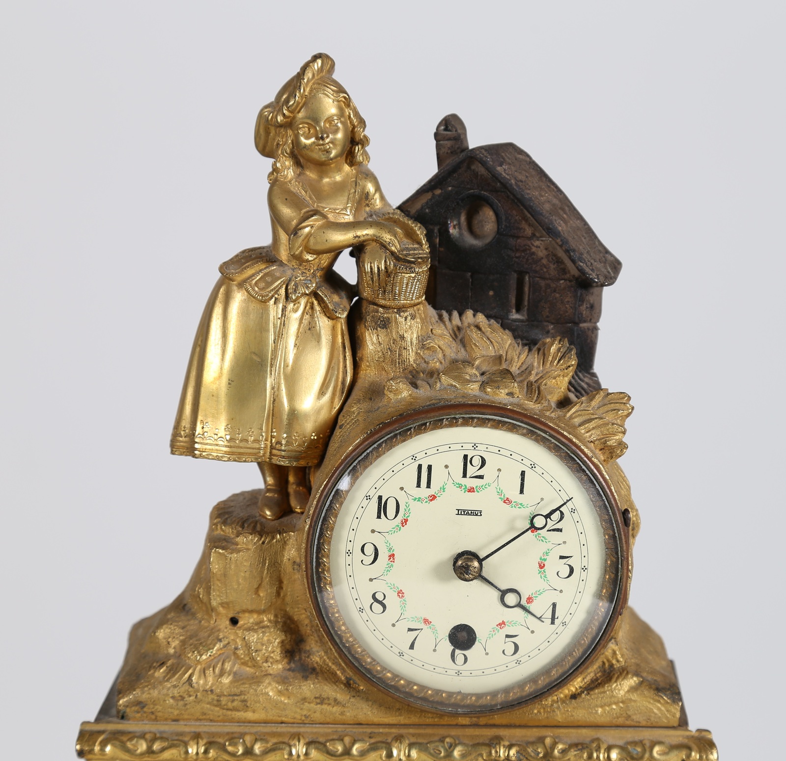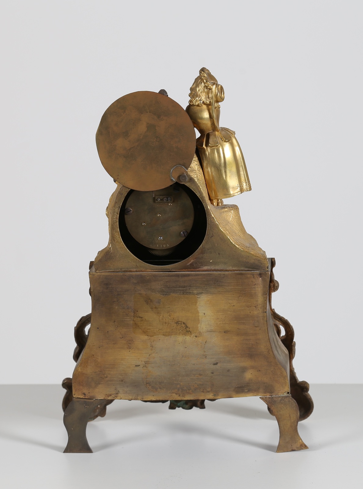 MANIFATTURA FRANCESE DEL XIX SECOLO Pendola romantic gilded bronze. . Cm 25,00 x 36,00 x 10,50.