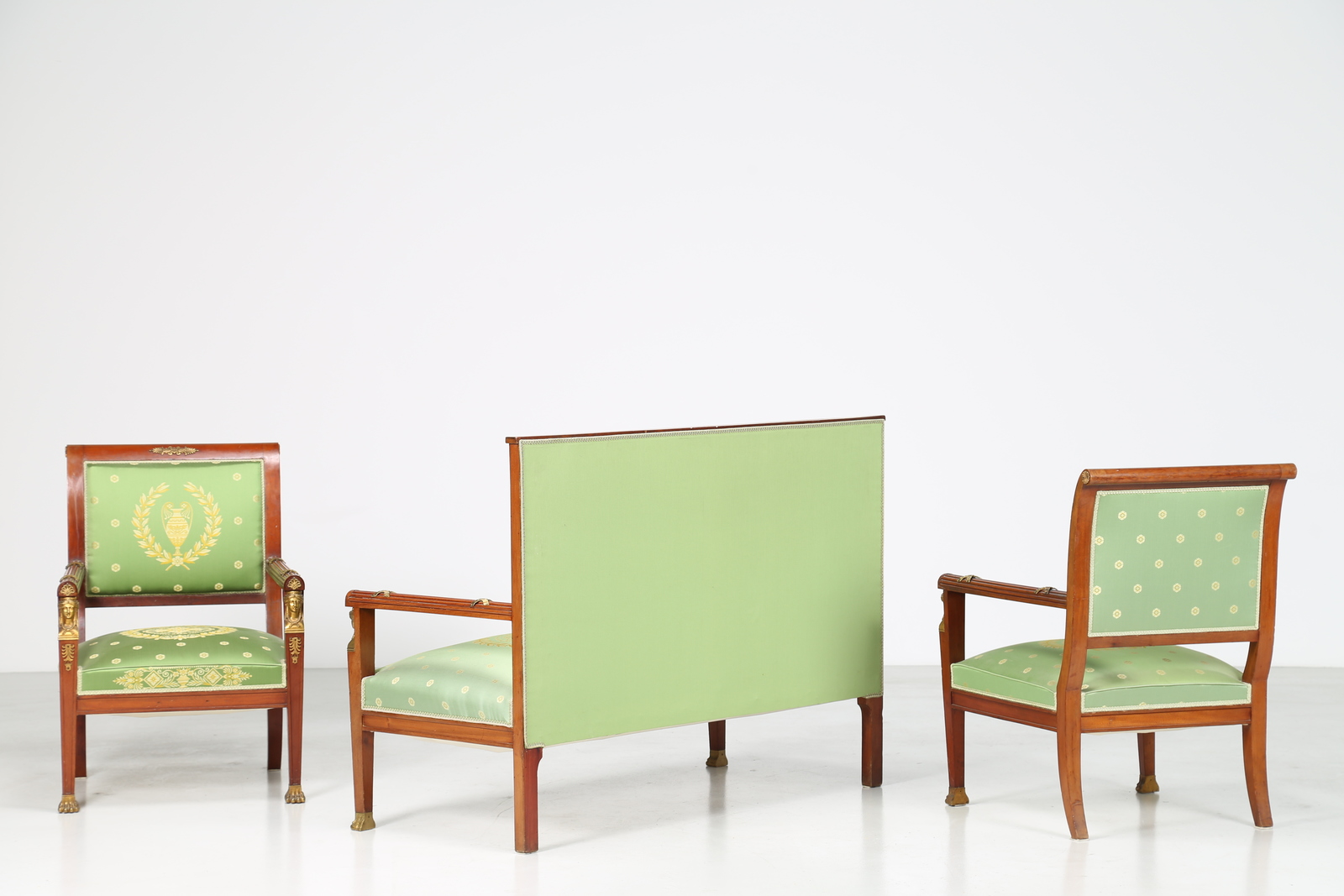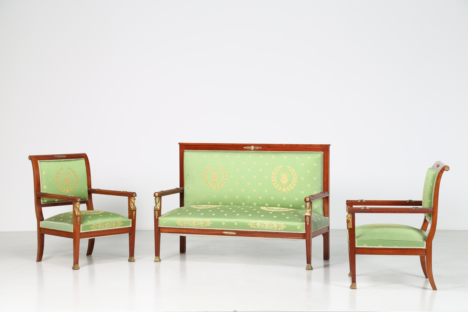 MANIFATTURA DELLA FINE DEL XIX SECOLO Divano e due poltrone in stile Iimpero. . .
