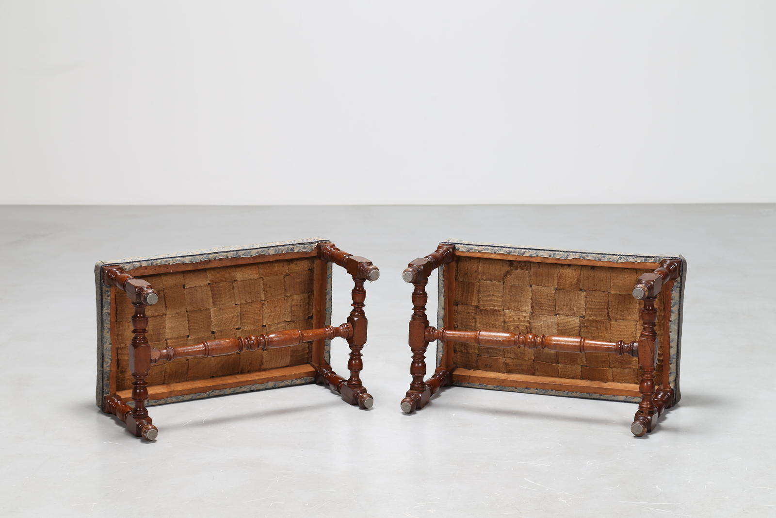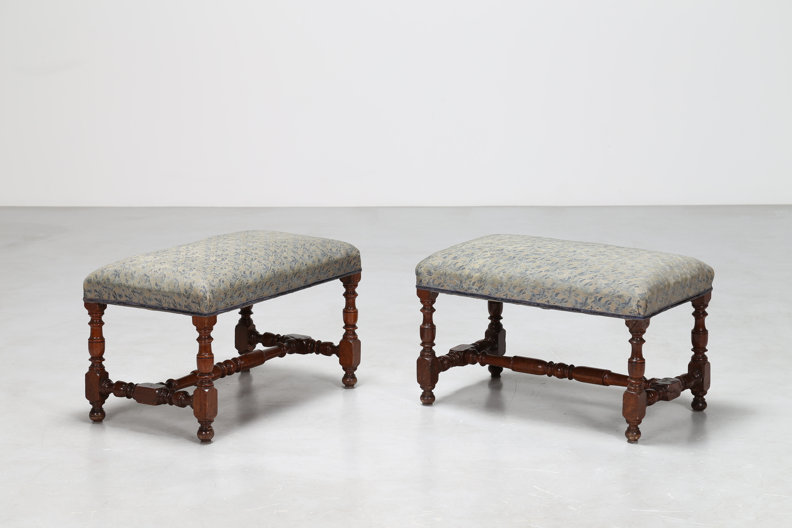 MANIFATTURA VENETA DEL XVII SECOLO Coppia di poggiapiedi in legno di noce. . Cm 66,00 x 42,00 x 40,00.