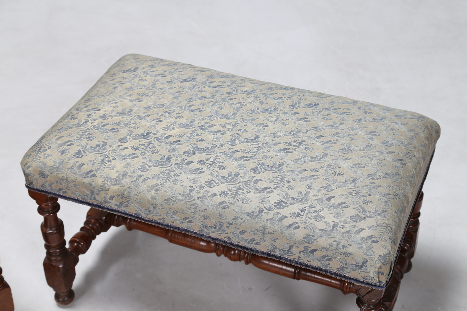MANIFATTURA VENETA DEL XVII SECOLO Coppia di poggiapiedi in legno di noce. ....