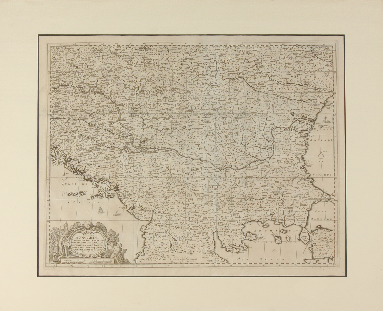 ARTISTA DEL XVIII SECOLO Ungheria, cartografia. Incisione su rame. Cm 49,00 x 61,00. Fine XVII-XVIII. Da Emendata G. a Schanghen. Tratto da Atlante. Al retro certificato di garanzia Galleria Magenta, Brescia. . Cornice presente