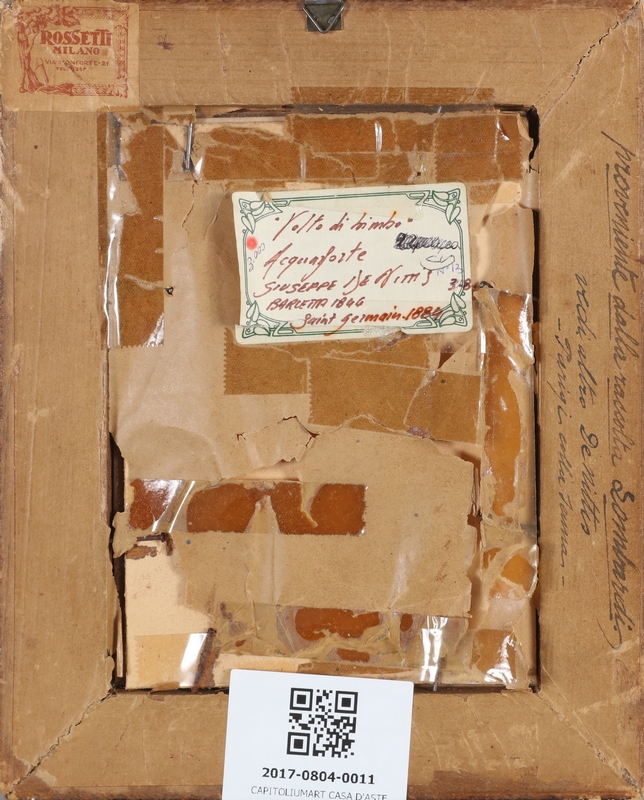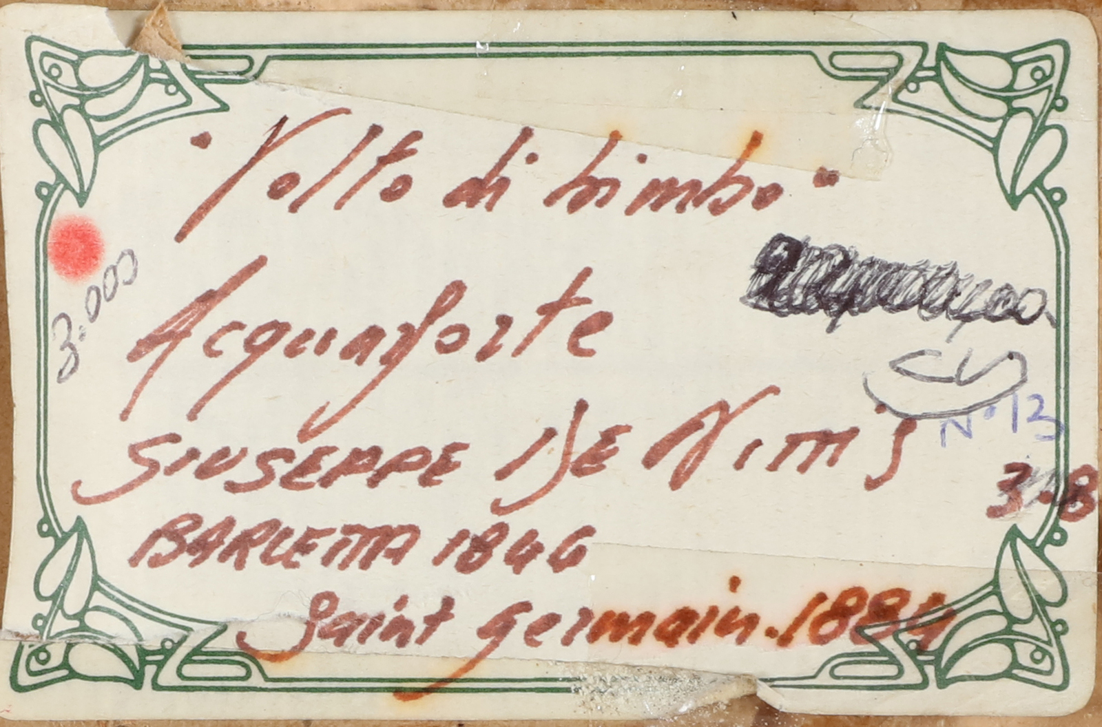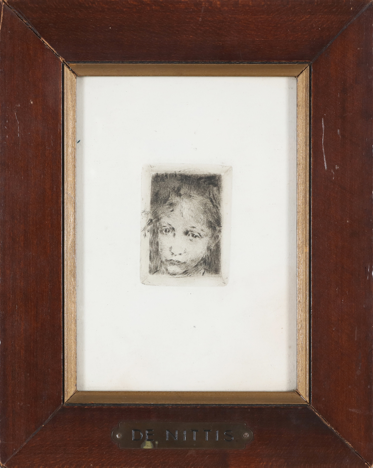 DE NITTIS GIUSEPPE (1846 - 1884) Volto di bimbo. . 1844. Acquaforte. Cm 4,50 x 6,50. Al retro provenienza Collezione Lombardi. . Cornice presente