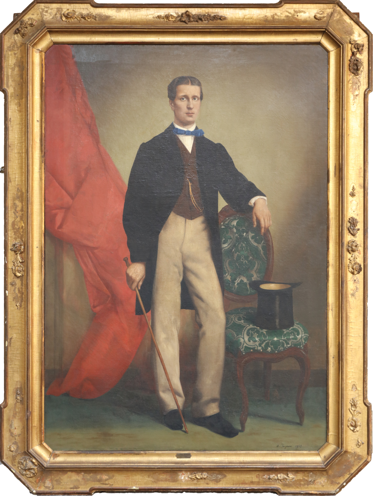 INGANNI ANGELO (1807 - 1880) Il nobile Capretti. 1865. Olio su tela . Cm 135,00 x 200,00. Firma e anno in basso a destra. Pubblicazione: Catalogo della mostra Pittura tra due secoli, opere di autori bresciani dell'Ottocento e del Novecento, Galleria d'Arte S. Gaspare, Brescia, 16 Dicembre 1983. Cornice presente