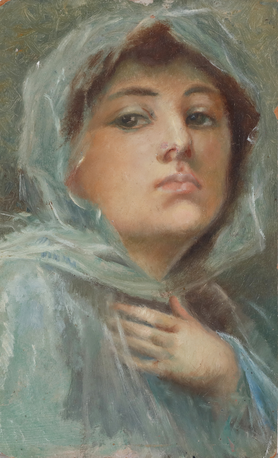 LANDI ANGELO (1879 - 1944) Attribuito a. Volto di fanciulla. Olio su compensato. Cm 16,00 x 23,00. . Cornice presente