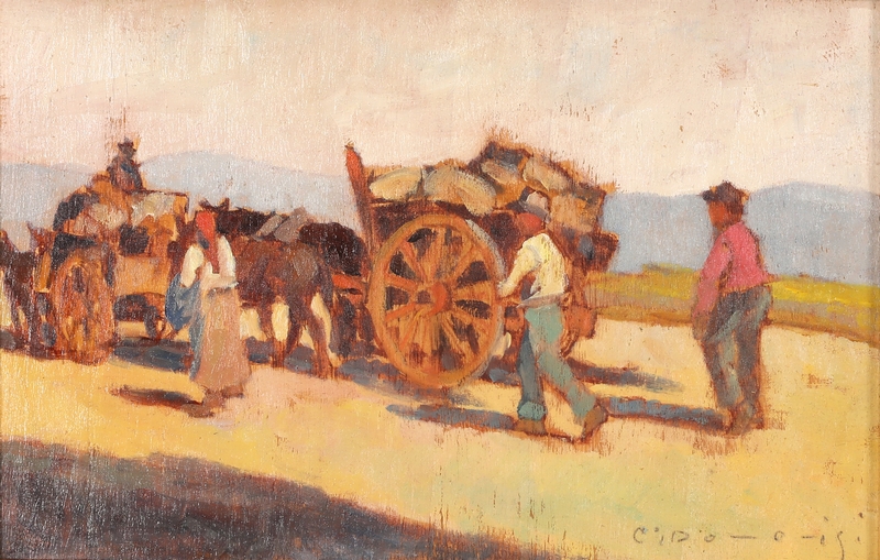 DOMENICI CARLO (1898 - 1981) Ritorno dai campi. Olio su tavola. Cm 19,00 x...