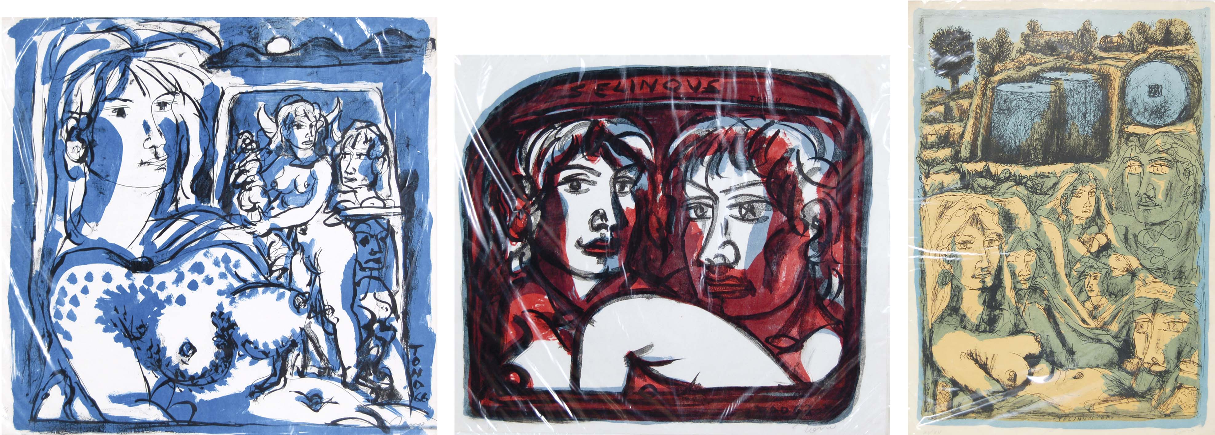 ZANCANARO TONO Padova 1906 - 1985 Soggetti vari lotto di tre litografie 44x50 47x50 70x50 cm firma data e tiratura in basso autentica dell'Archivio Tono Zancanaro a cura del prof. Manlio Gaddi - etichette al retro Luisa 1966 es. 17/80 Selinous (To e Lu) 1967 es. 1/80 Selinuntea - cave di Cusa 1972 es. XI/XV