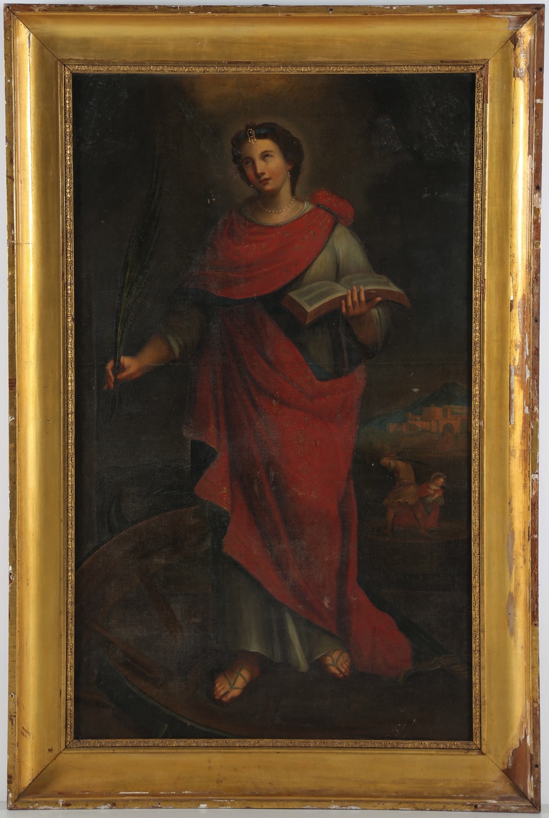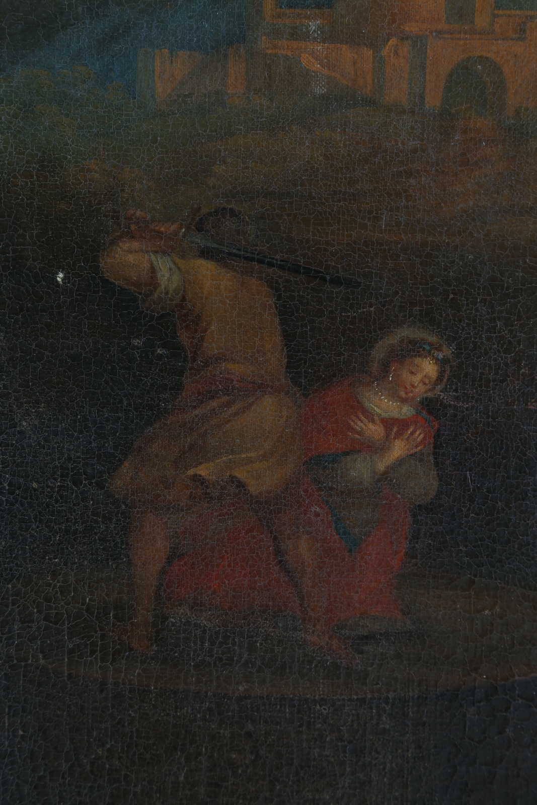 ARTISTA DEL XVII SECOLO. Martirio di una santa. Olio su tela . Cm 100,00 x 164,00.