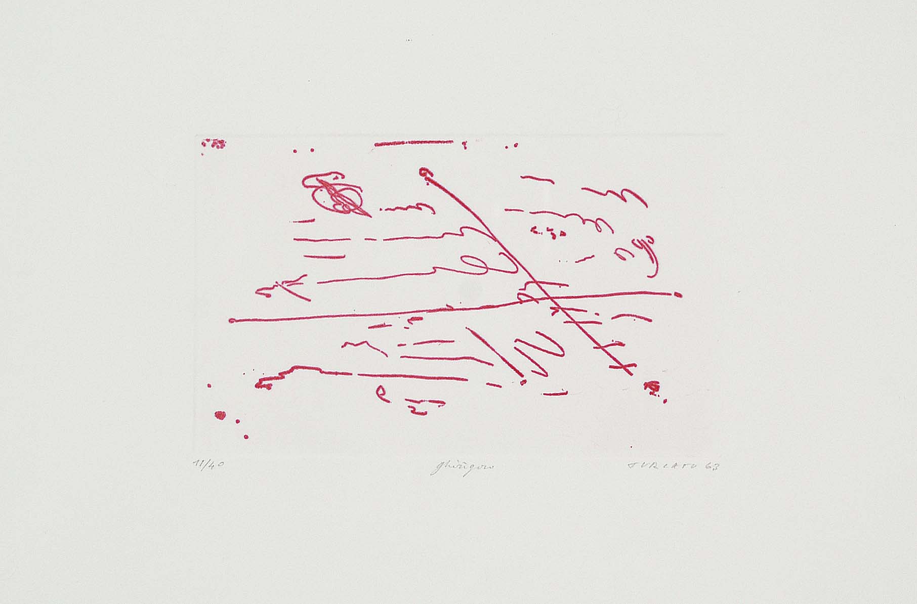 TURCATO GIULIO Mantova 1912 - Roma 1995 Ghirigori 1963 acquatinta es. 11/40 35x50 (foglio) 15x24,5 (lastra) cm firma e data in basso a destra titolo in basso al centro tiratura in basso a sinistra
